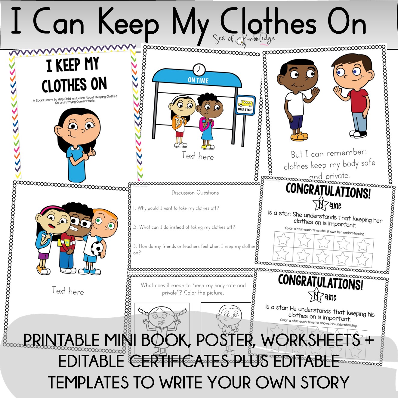 Keeping Clothes on EDITABLE Social Skills Story Comprehension and Mini Books