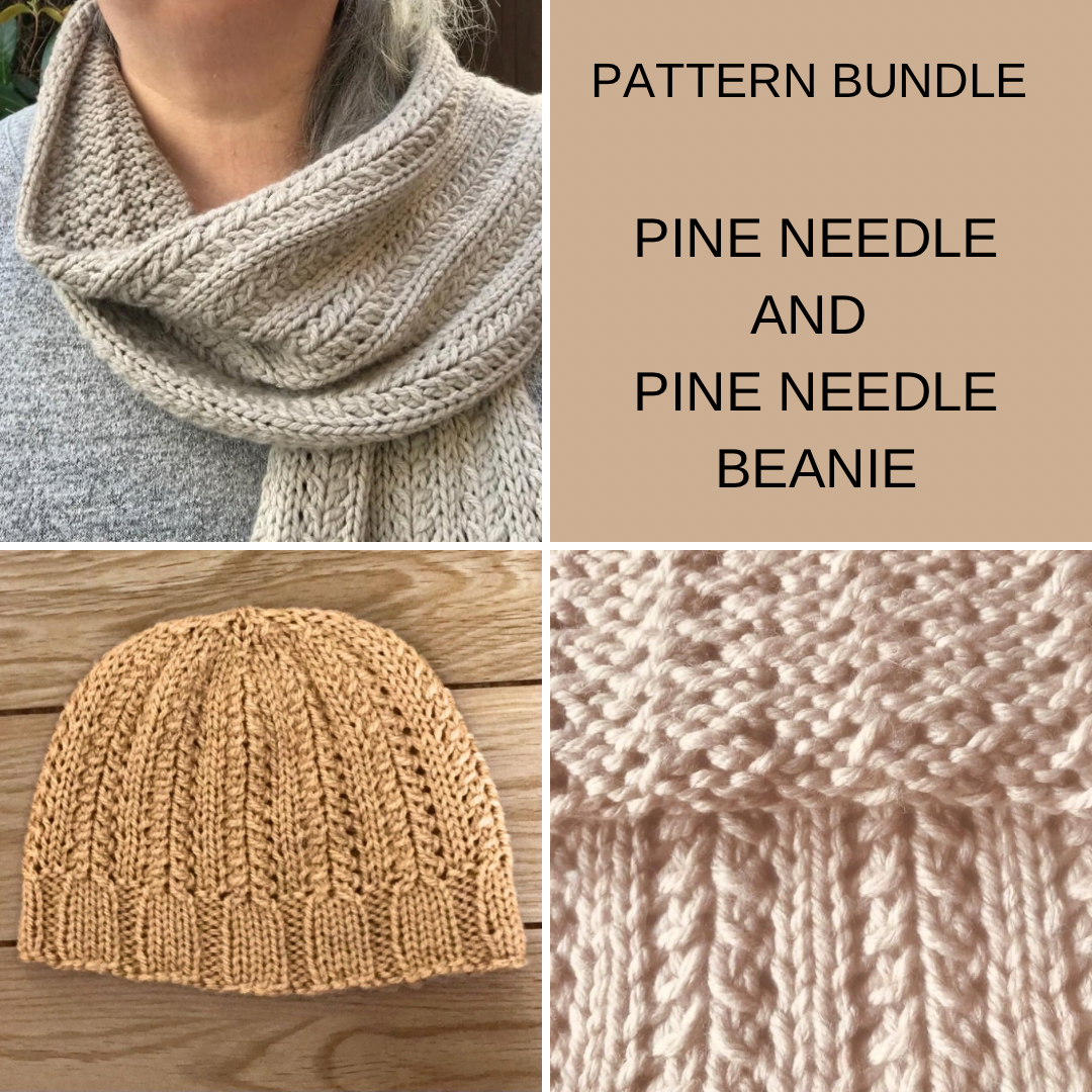 1 x pattern bundle including Pine Needle (chunky and aran version) and Pine Needle Beanie. BOTH PATTERNS MUST BE DOWNLOADED