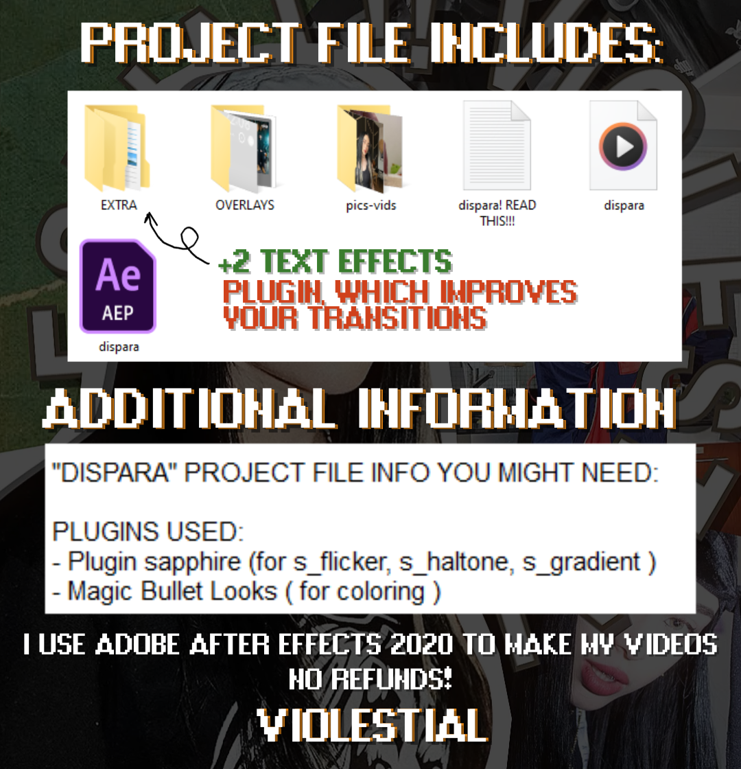 The main purpose of my project files is so other people can learn how I do my overlays, effects, transitions, keyframing and my style in general! It is very useful to learn and improve with editing. I also allow people to save and use presets from my project files ( coloring, overlays, shakes, text effects & etc.) however you must give credits. I am very uncomfortable with people replacing the footage in my project files and posting it, it’s not fair to me and the amount of work I’ve put into my edits :( stealing my edit doesn’t improve your editing skill, and the main goal of my project files is IMPROVING. Please keep it in mind <з