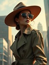 - Chic Fashion Illustrations: A collection of images featuring women dressed in high-fashion outfits, including wide-brimmed hats, oversized sunglasses, and elegant trench coats, posed confidently in stylish city settings.