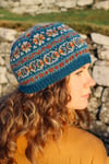 A simple Fair Isle beanie incorporating the motifs from my Roosty Tank Top pattern. Two colourways are provided, both inspired by Shetland’s landscape.