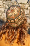 One size, finished height 20cm/8”; circumference 55cm/21.5”; will fit average adult-size head.