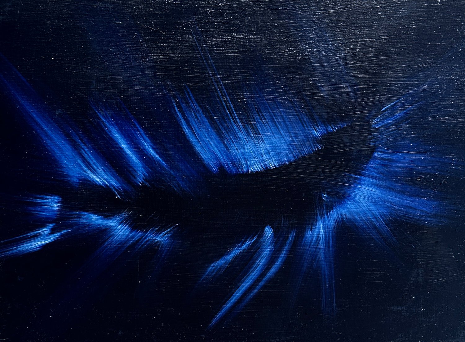 Original oil painting of a Minke whale inspired by the aurora corona in blue. Painted on MDF board, measuring 16 x 11.9 cm, unframed.