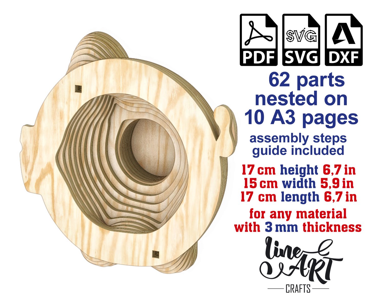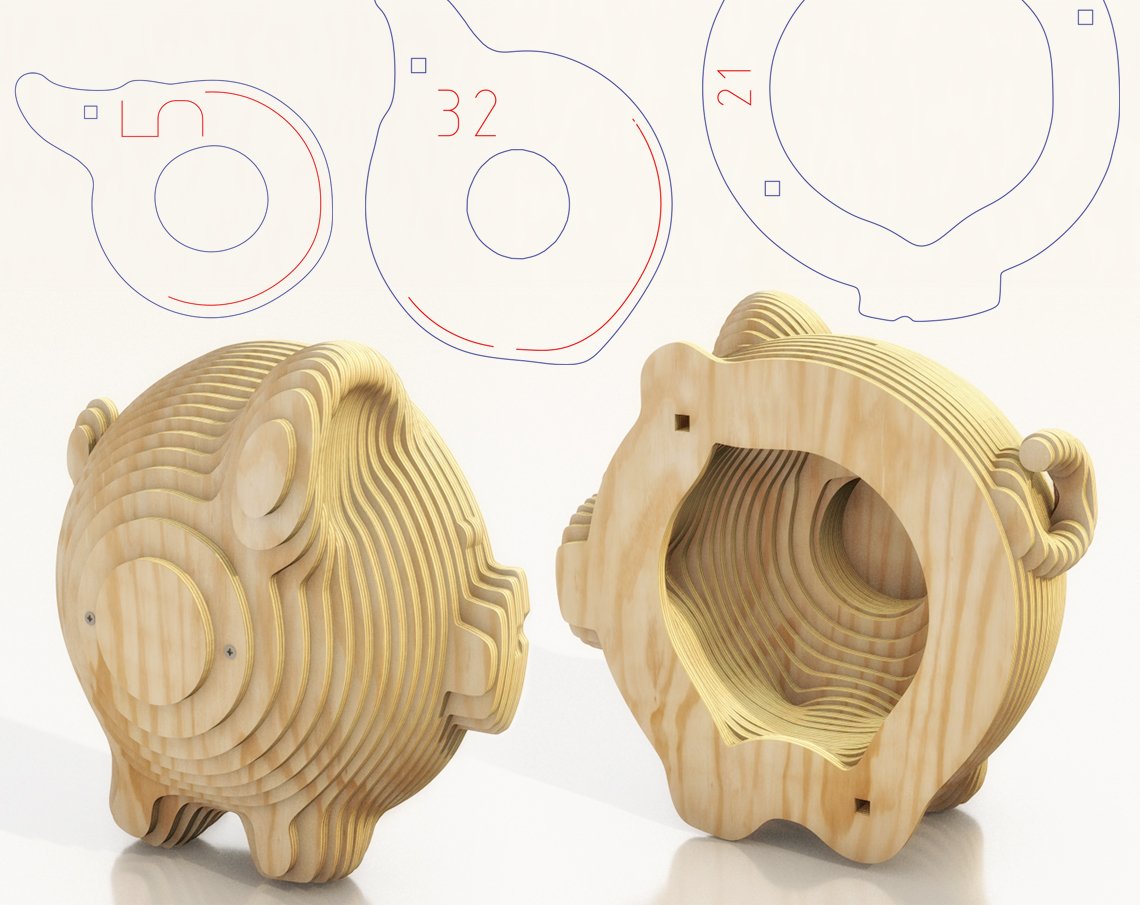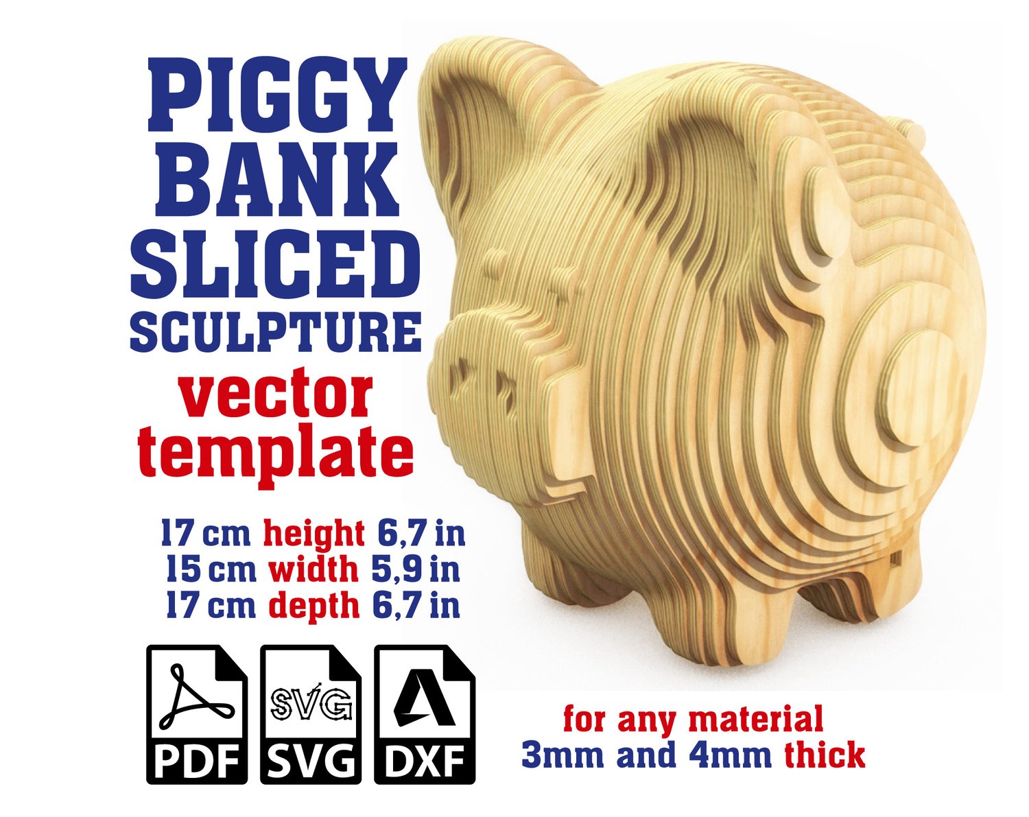 Piggy Bank Sculpture Sliced Vector template 3 and 4mm