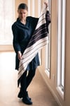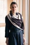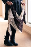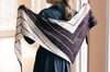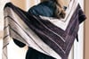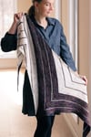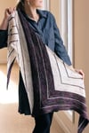 Alternating textures in two colors decorate a bold triangle shawl, then advance unexpectedly to one side, for an asymmetric finish. Color choice is the focus, the shape is long and easy to wear, and the knitting is simple and relaxing.