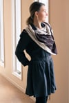 Yarn: Hedgehog Fibres Skinny Singles (100% merino wool; 400 yards/366m/100g), shown in Urchin (A) and Vengeance (B); 1 skein each of two colors. The sample used approximately 355 yards A and 395 yards B. Using a drapey single or loosely plied yarn will help minimize rolling at the long bottom left edge.