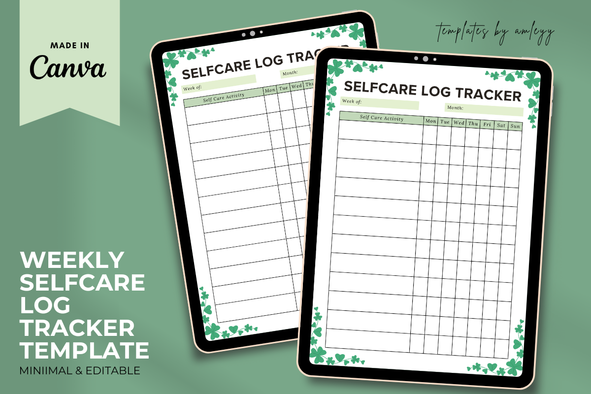 Weekly Self-Care Log Tracker Template – Editable Canva Wellness Planner