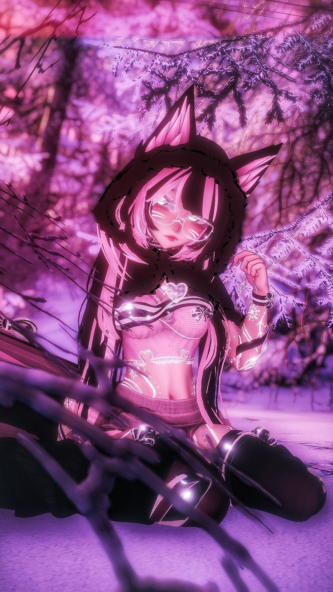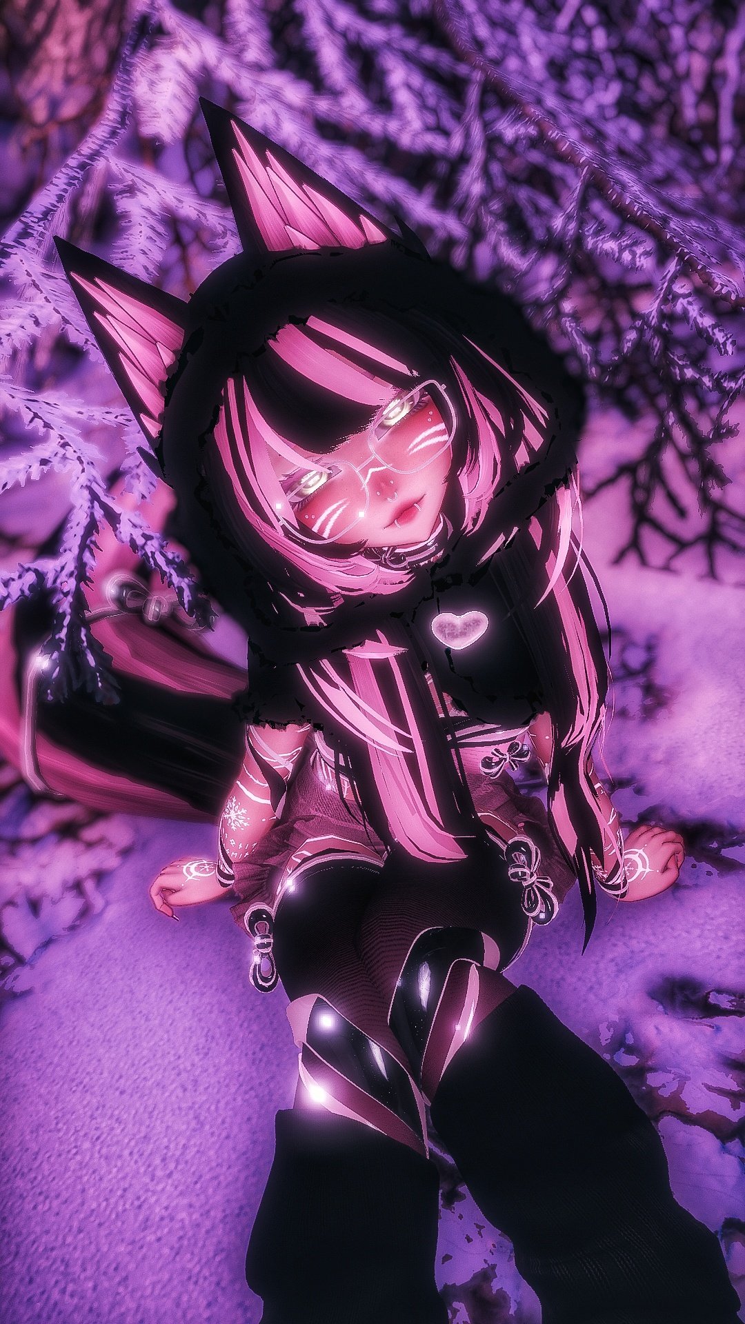 Items: Vape (Works! put to your mouth to use), Knife (Grabbable, hold in your mouth or hands), Gesture Emotes (Facial addons with hand gestures), Inner Heart (Listen close to hear her heart beat), Surrounding Snowflake Particles, Snowy Paw Print Trail, Throwable Snowballs (Make a fist to spawn a snowball in your hand, open hand to throw!), Hand Snowflake Particles (Move your hands to throw around snowflakes!)