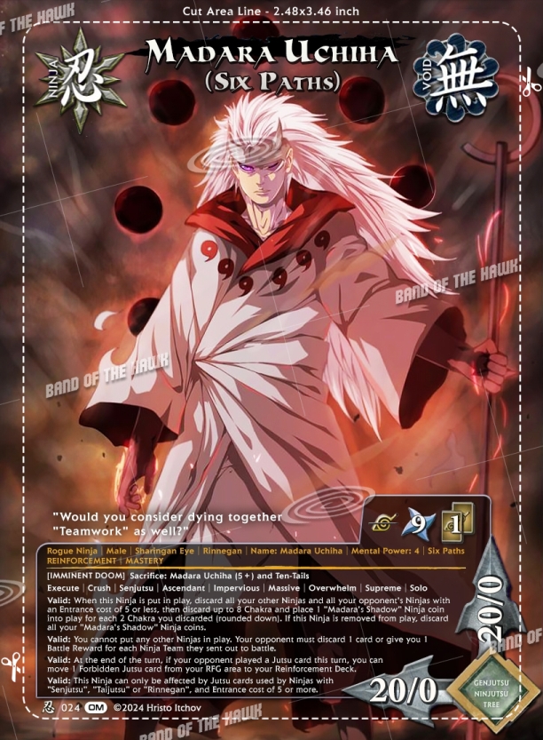 n024 - Madara Uchiha (Six Paths) Promo Ninja card from our Obito & Madara card set for Naruto CCG.