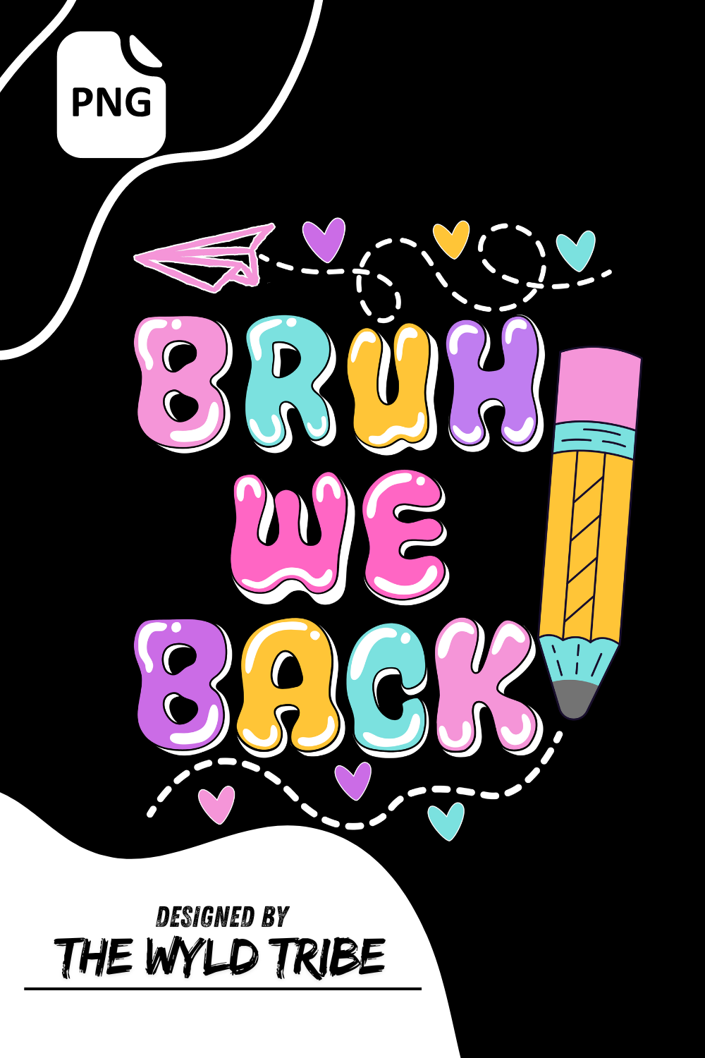 Get ready to groove into the new school year with our vibrant "Bruh We Back" digital PNG design. This design is a must-have for those who love to stand out, featuring funky, colorful text that pops with retro charm, adorned with playful paper planes and small hearts. Perfect for creating eye-catching posters, stickers, or digital greetings, it captures the excitement of returning to school with style and flair. Embrace the fun and positivity of back-to-school season with this lively and energetic design that will make a statement wherever it's used.