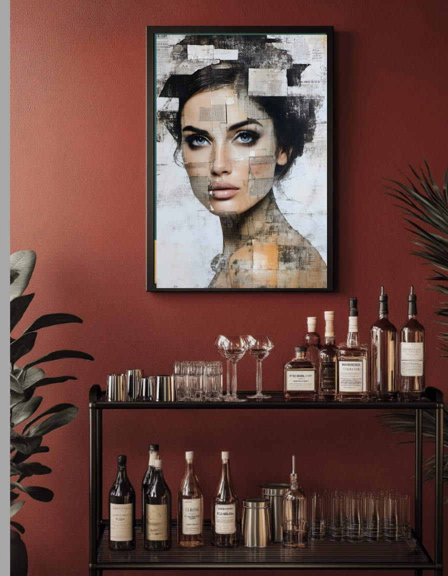 Transform your walls with this stunning 300 DPI printable art print of an enigmatic woman in a newspaper collage portrait. Featuring piercing blue eyes, flowing dark hair, and vintage newspaper clippings in an abstract mixed media style, this high-resolution modern wall art combines realism and textured depth for a captivating, thought-provoking display. Ideal for contemporary home decor, gallery walls, or as a unique gift for fans of collage portraits, abstract female art, or newspaper-inspired prints.