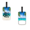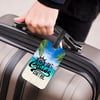 Luggage Tag imaged on both sides and comes with black strap to attach to backpacks, luggage etc. These tags measure 3.75" x 2.25".