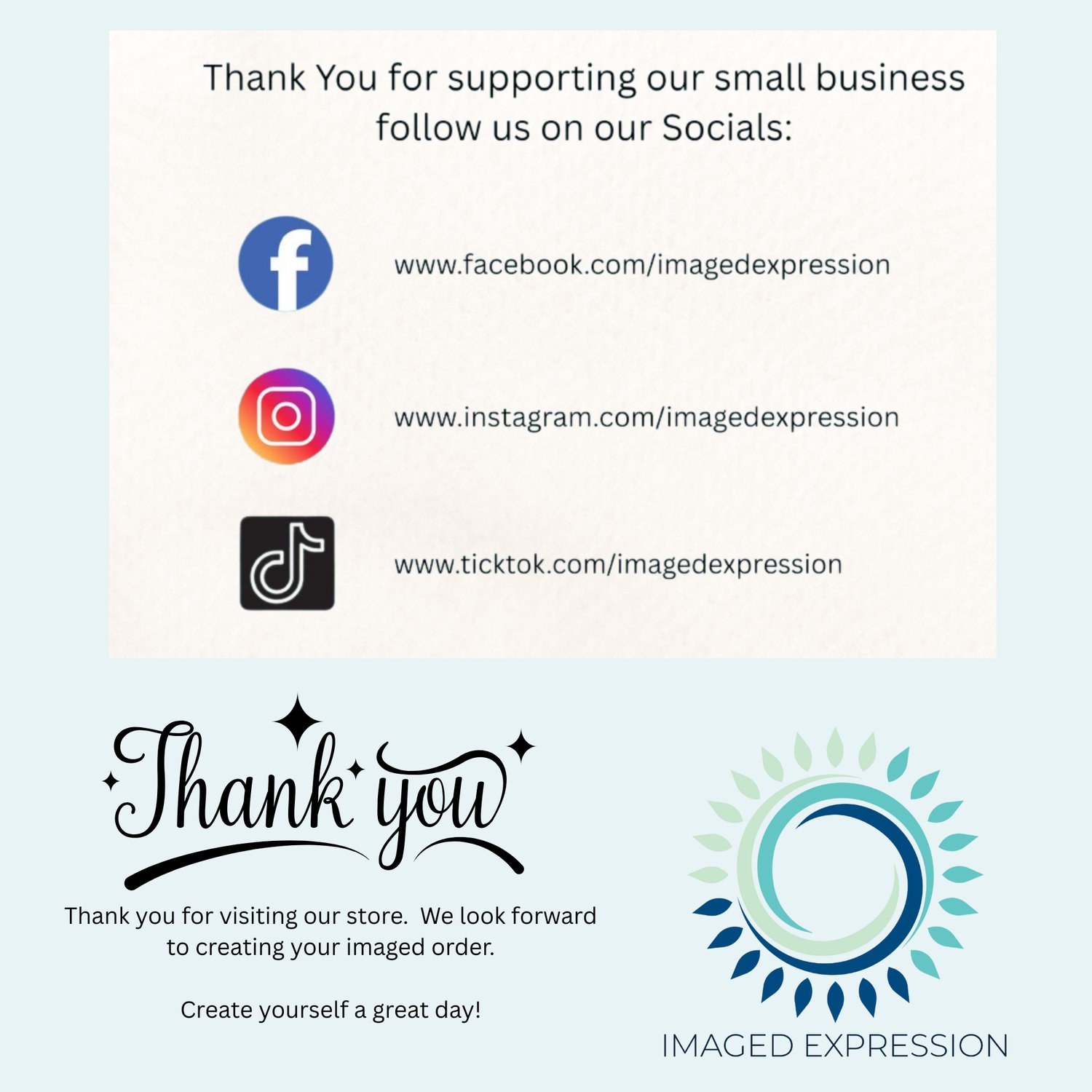 The space on the back for contact information will come blank if we do not receive an email with the text you would like to have imprinted on the tag. Send your text selection to imagedexpressionsales@gmail.com, include the product purchased along with your name and order number if you have it. 2 lines of text, each up to 12 characters can be listed for us to image onto your tag.