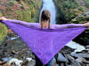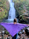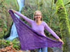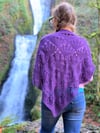 Worked from the point up Amethyst Fans is a versatile lace shawl that can be made to suit nearly any gauge or amount of yarn. To adjust the size simply begin the edging pattern when the shawl has reached the desired size.