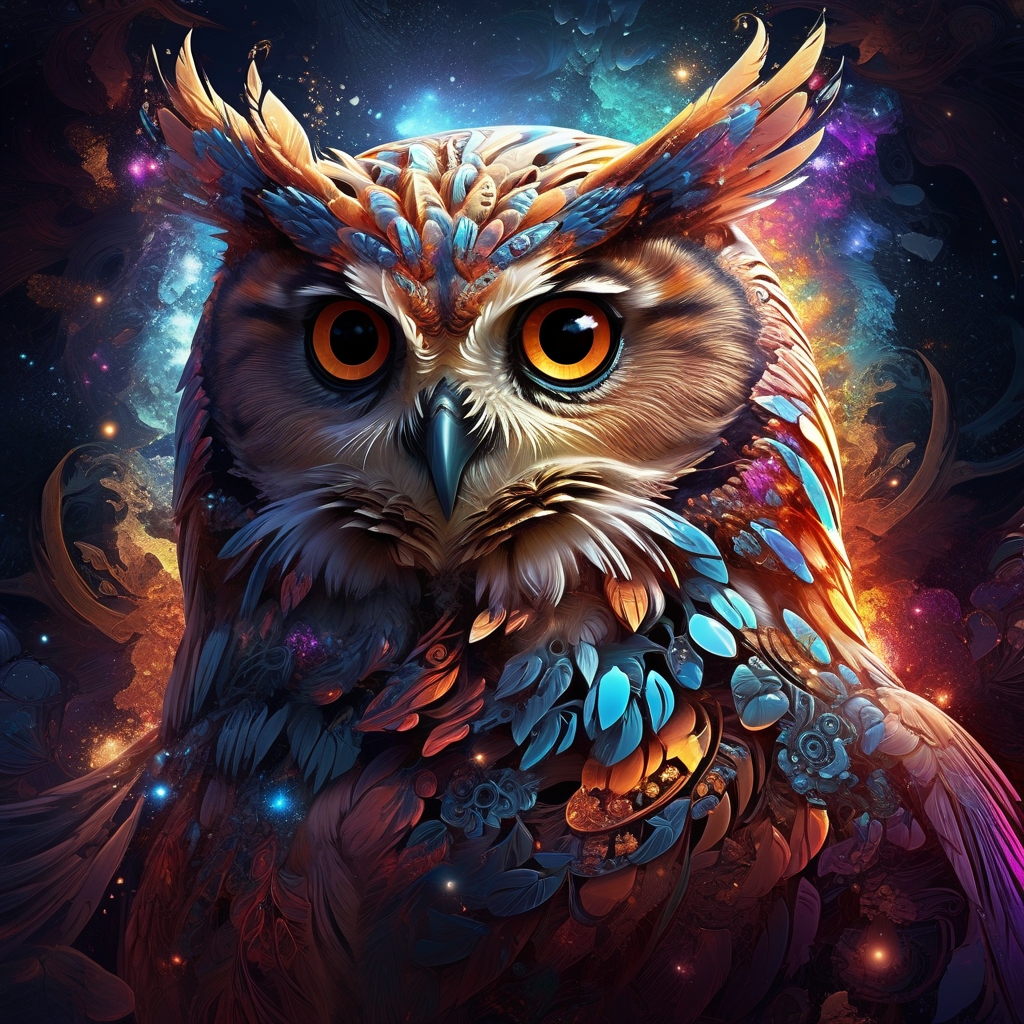 Vibrant Colored Owl in a Cosmic Setting