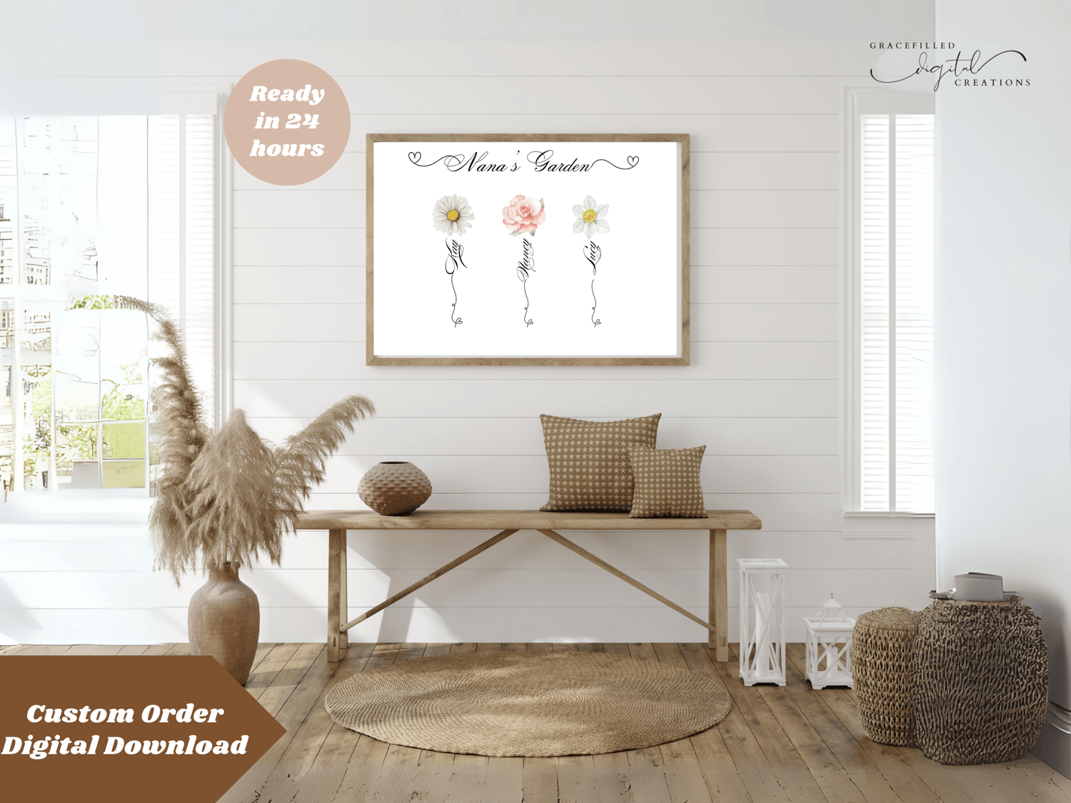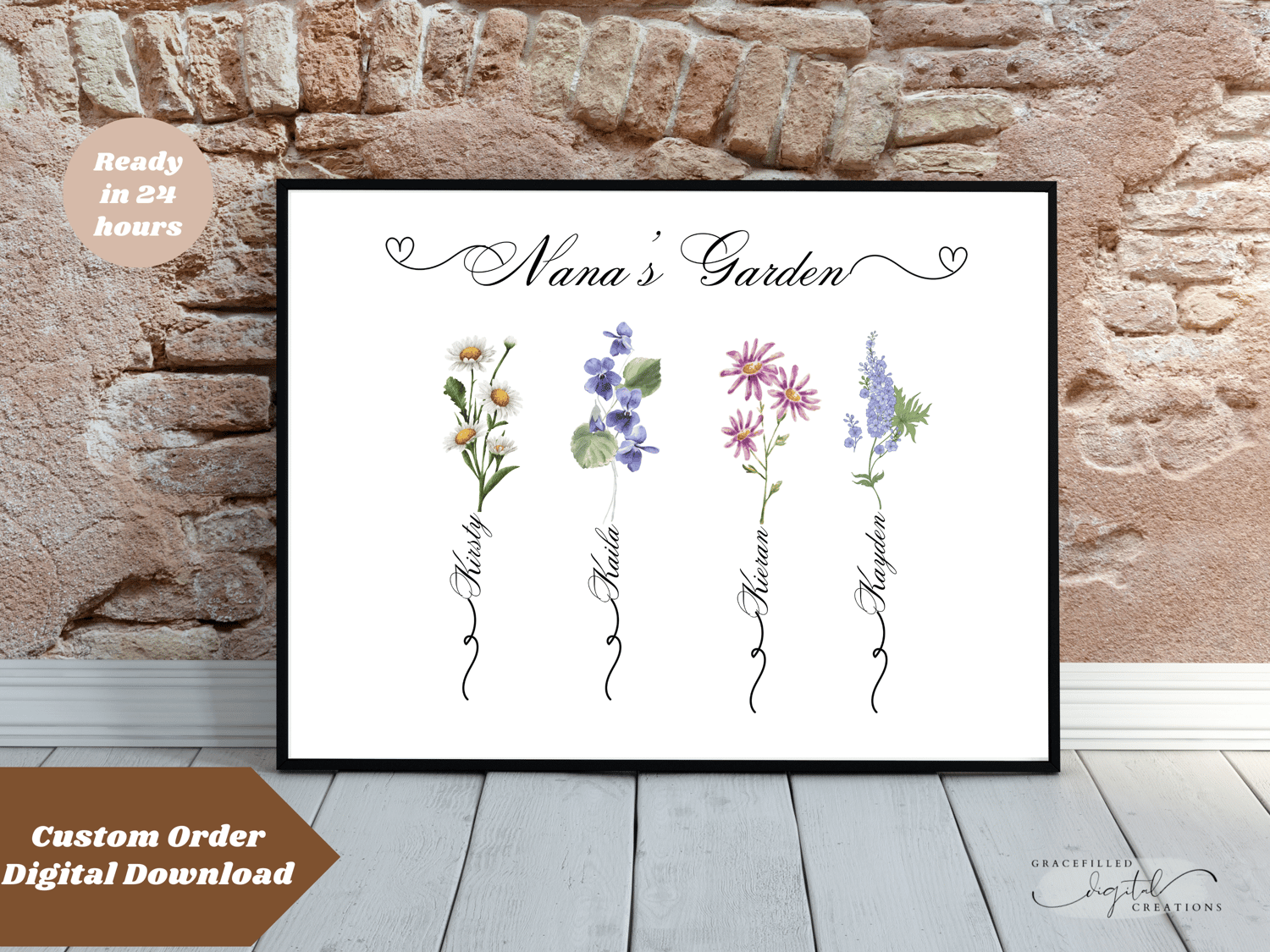 Grandma, Nana's Garden, Birth Month Flower Name Sign, Custom Grandkids Birthday Month Flower Print, Personalized Family Name, Custom Family Tree