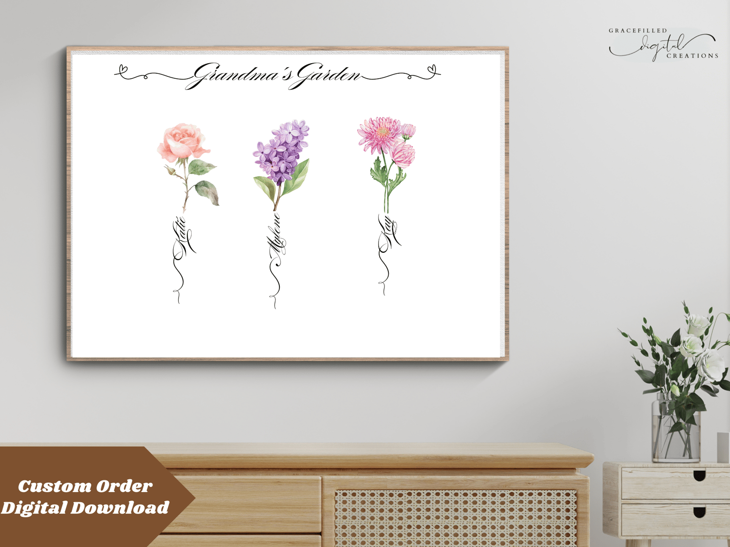 This custom birth flower digital print makes a perfect gift for Grandma for Mother's Day, Christmas, Anniversary or just because....