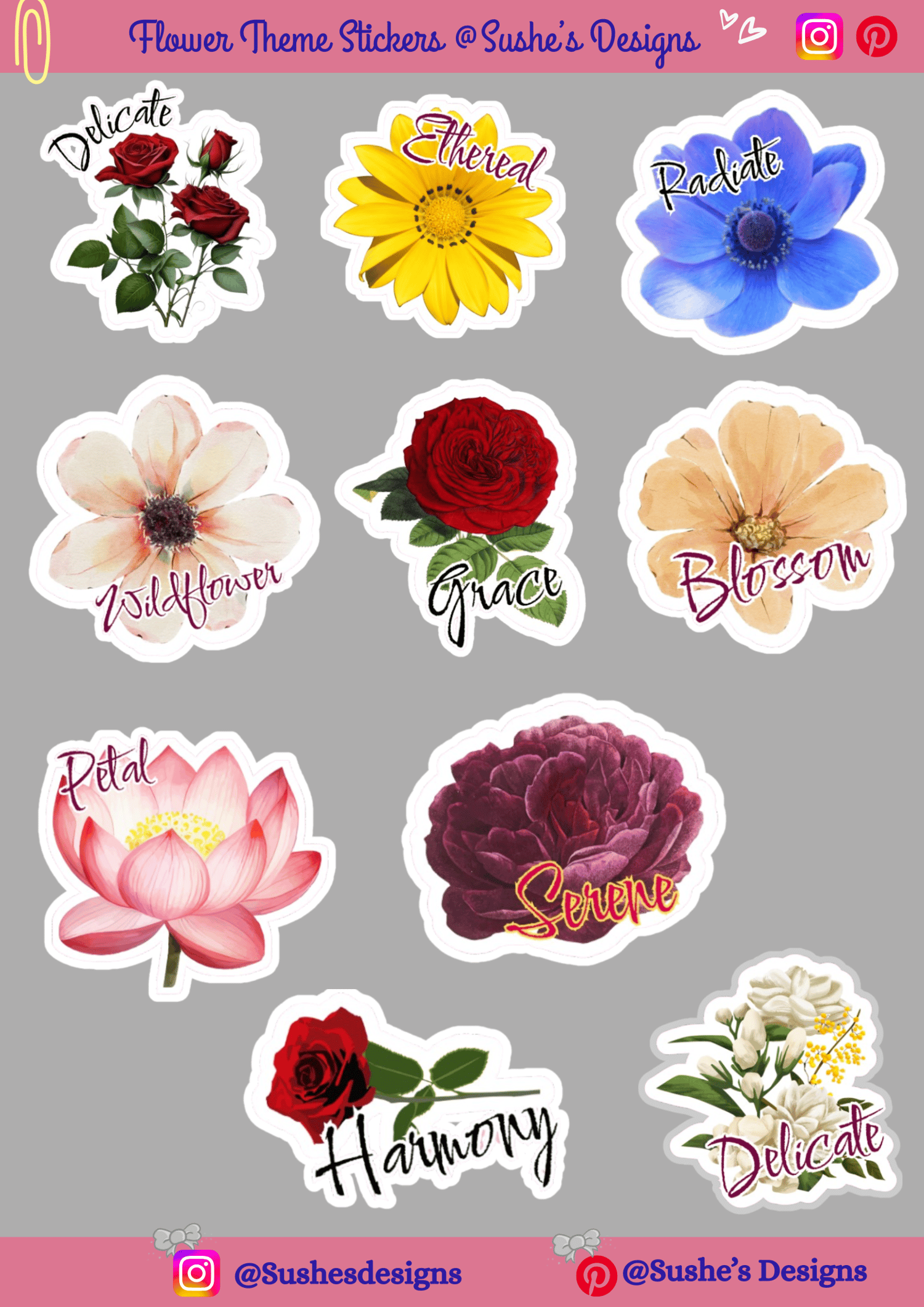 Bring a touch of nature and creativity to your projects with this beautiful Flower Theme Sticker Pack from Sushe’s Designs.
