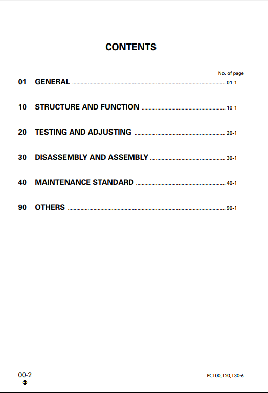 KOMATSU PC100-6, PC100LC-6, PC120-6, PC120LC-6, PC130-6 SHOP MANUAL S/N E0 S/N 70001-UP and more