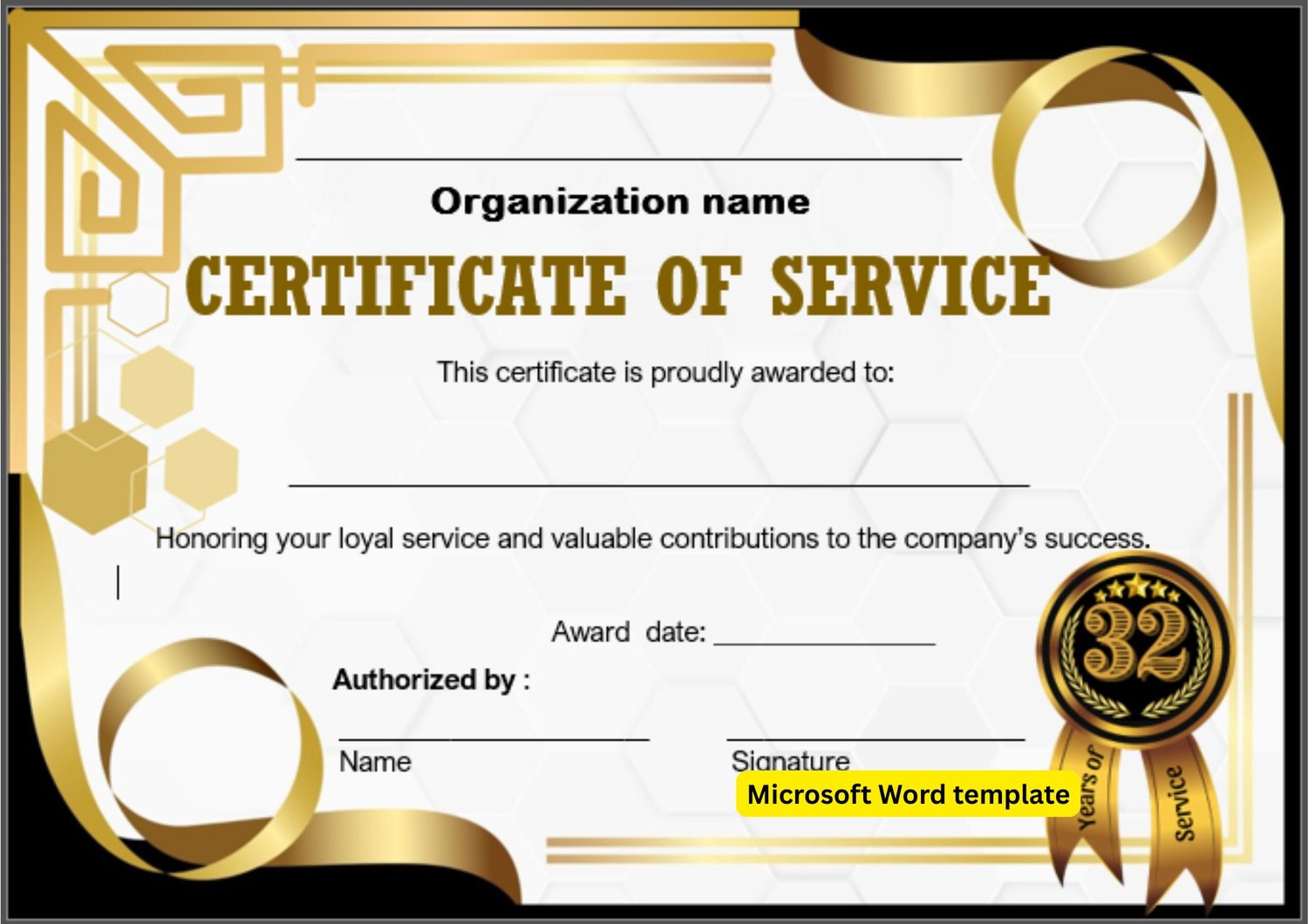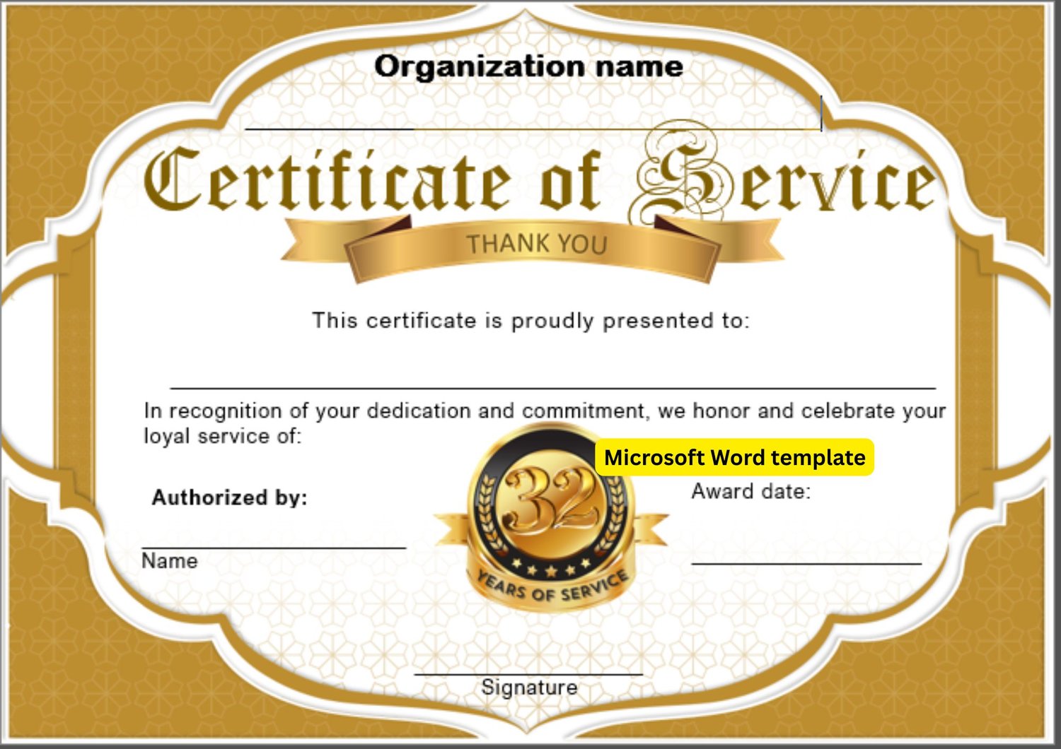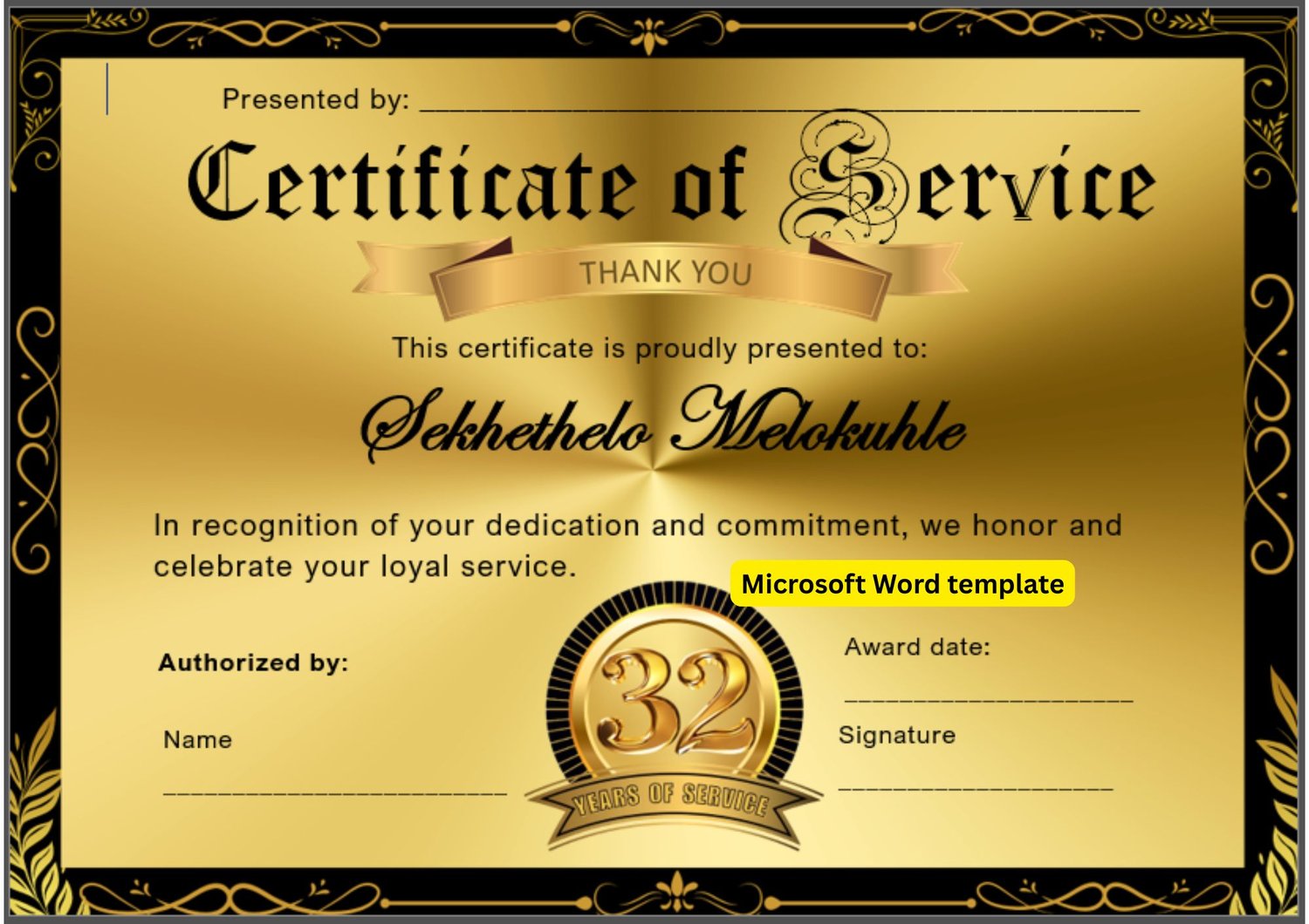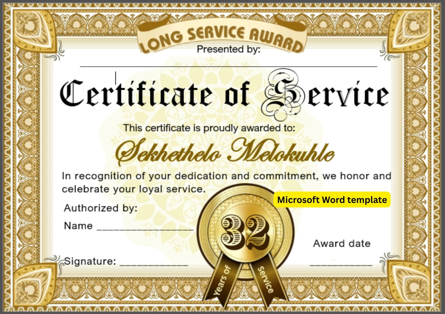 32 years service. Microsoft Word template with logo tailored with number of years
