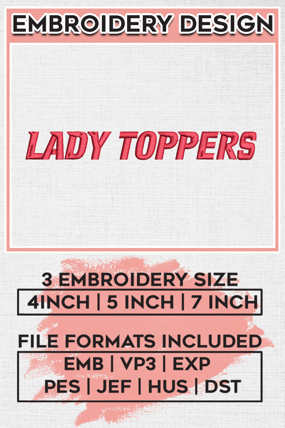 Ncaa Hilltoppers Lady Toppers Logo Embroidery Designs, NCAA Western Kentucky HilltoppersMachine Embroidery Designs, NCAA Logo embroidery designs, Ncaa WKU Hilltoppers Logo, Digital Download