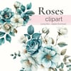 Elevate your designs with this enchanting watercolor blue and cream wild roses clipart bundle. This collection offers an array of flowered arrangements, in captivating dusty blue, teal and cream tones, which will help you to make borders and frames easily. Perfect for enhancing wedding invites, greeting cards and more.
