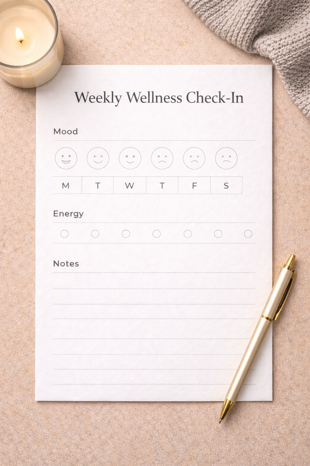 This weekly wellness check-in helps you reflect on your energy, mood, and self-care habits. A simple and gentle planner page designed to support balance and emotional well-being.