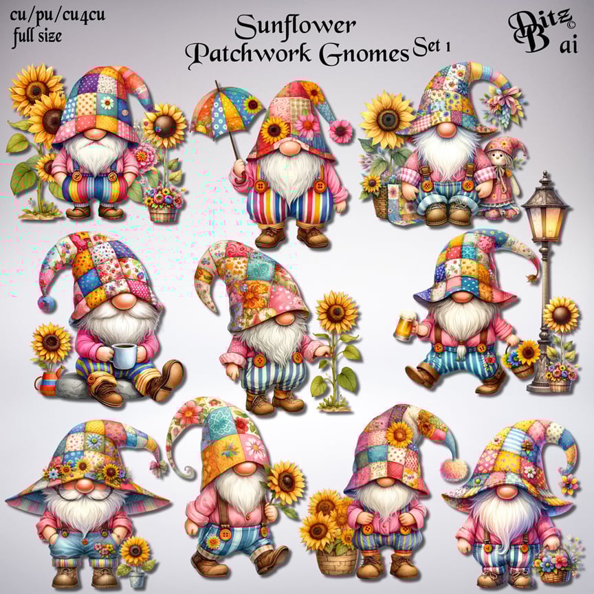 Sunflower Patchwork Gnomes Set 1
