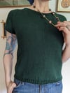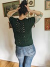 The Shark Tooth Tee is a seamless, top-down tee with raglan shaping and an open, lacey panel on the back. It is an eye-catching wardrobe staple with a built-in air conditioner!