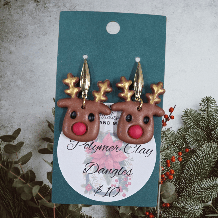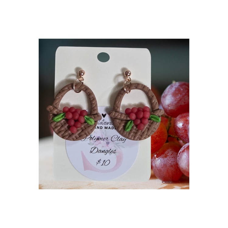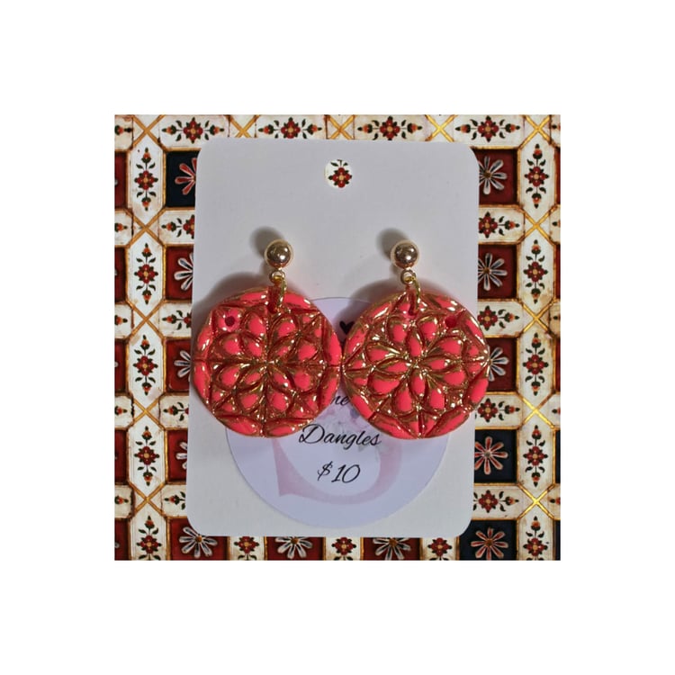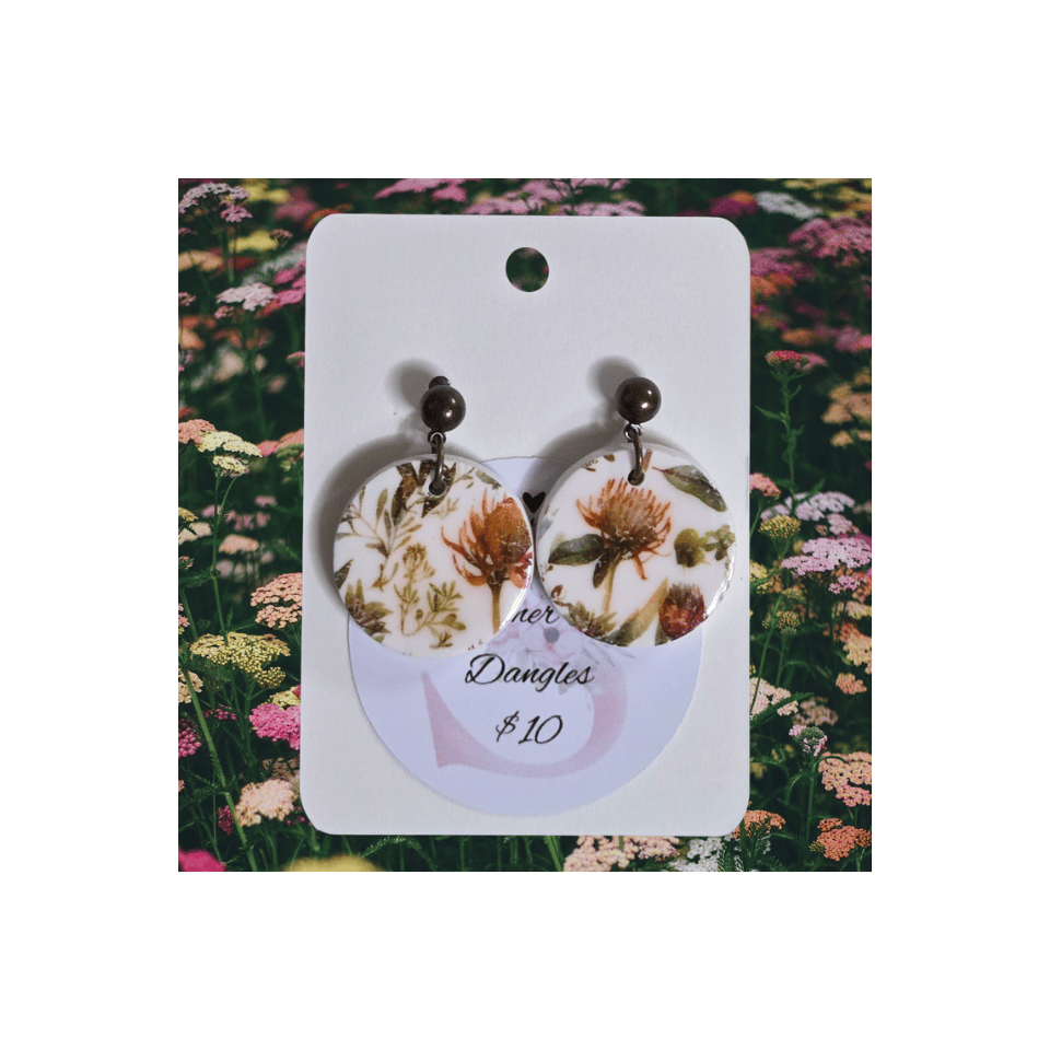 These lightweight polymer clay dangle earrings feature a soft floral pattern with warm, earthy tones. Finished with simple brass stud posts, they’re easy to wear and add a natural, handmade touch to everyday outfits or casual dress looks.