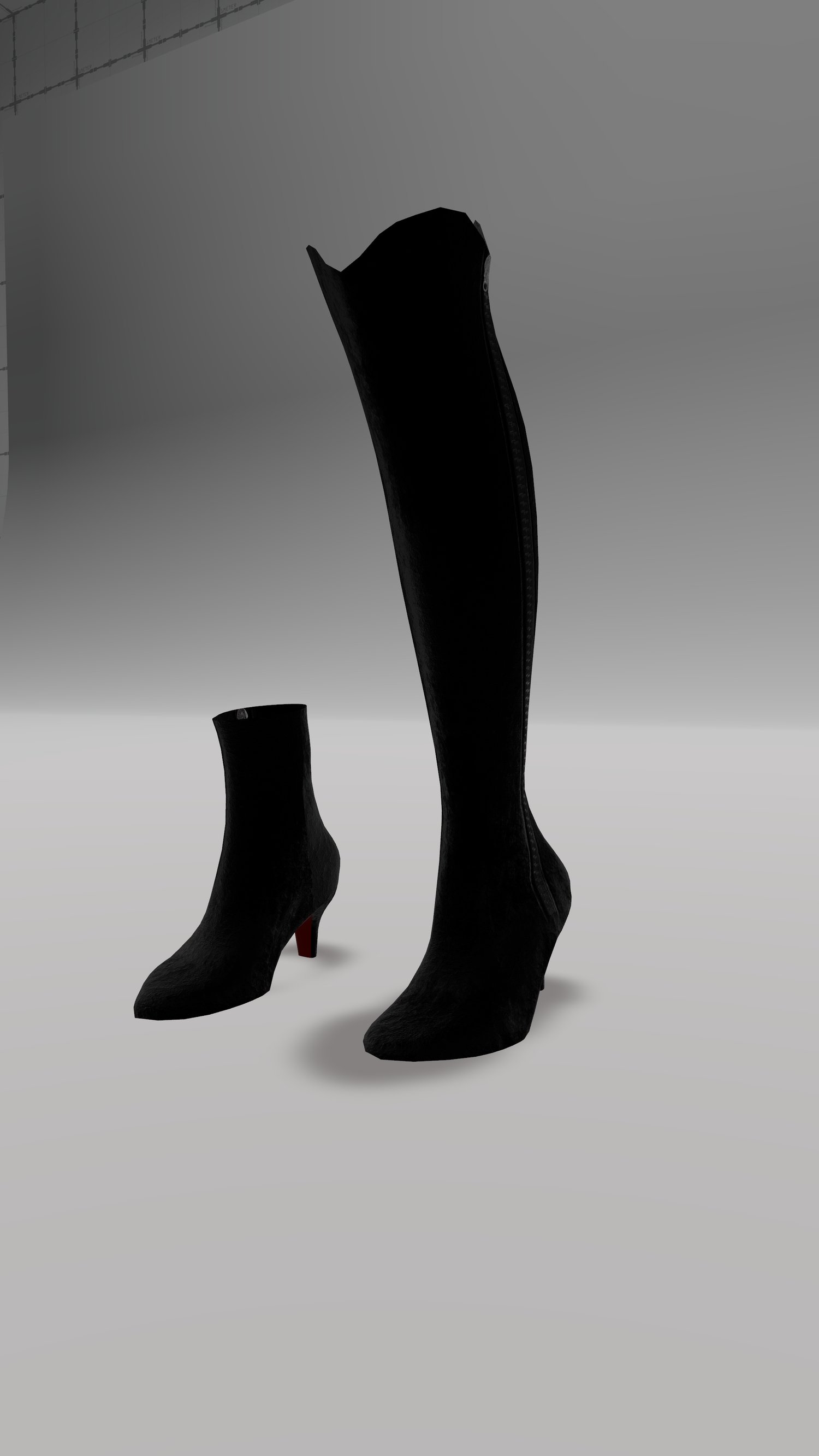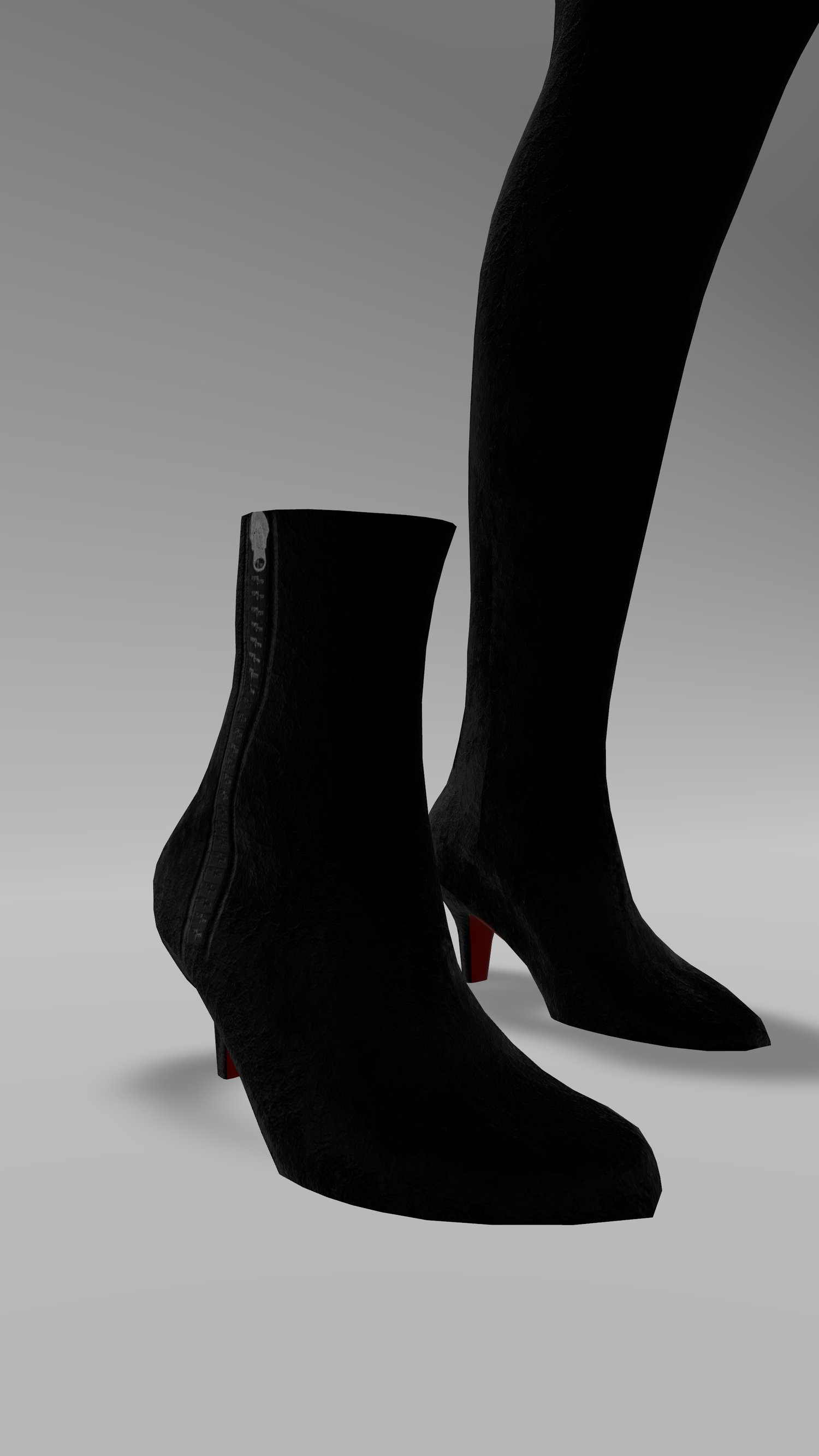 These heels are custom-made by me, and loosely rigged ZInPia's RP Male base; they are NOT rigged with hyper-extension and full-body tracking in mind. Re-weighting may be needed to accommodate full-body tracking. While these are fitted to ZinPia RP Male Base, unfortunately, there is no heeled foot on this base; posing is REQUIRED.