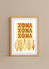 Iowa Iowa— This print is a charming shout-out to the heartland. Set in a white frame, and a warm, sunny yellow background, it features bold stacked lettering: “Iowa Iowa Iowa.” At the bottom, a sweet cluster of illustrated ears of corn adds a little farm-fresh flair. Nostalgic, whimsical, and perfect for Midwest lovers and corn enthusiasts alike.