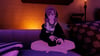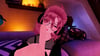 Jacket, top, shorts, underwear (nsfw), shoes, fishnet top, glasses, headphones.