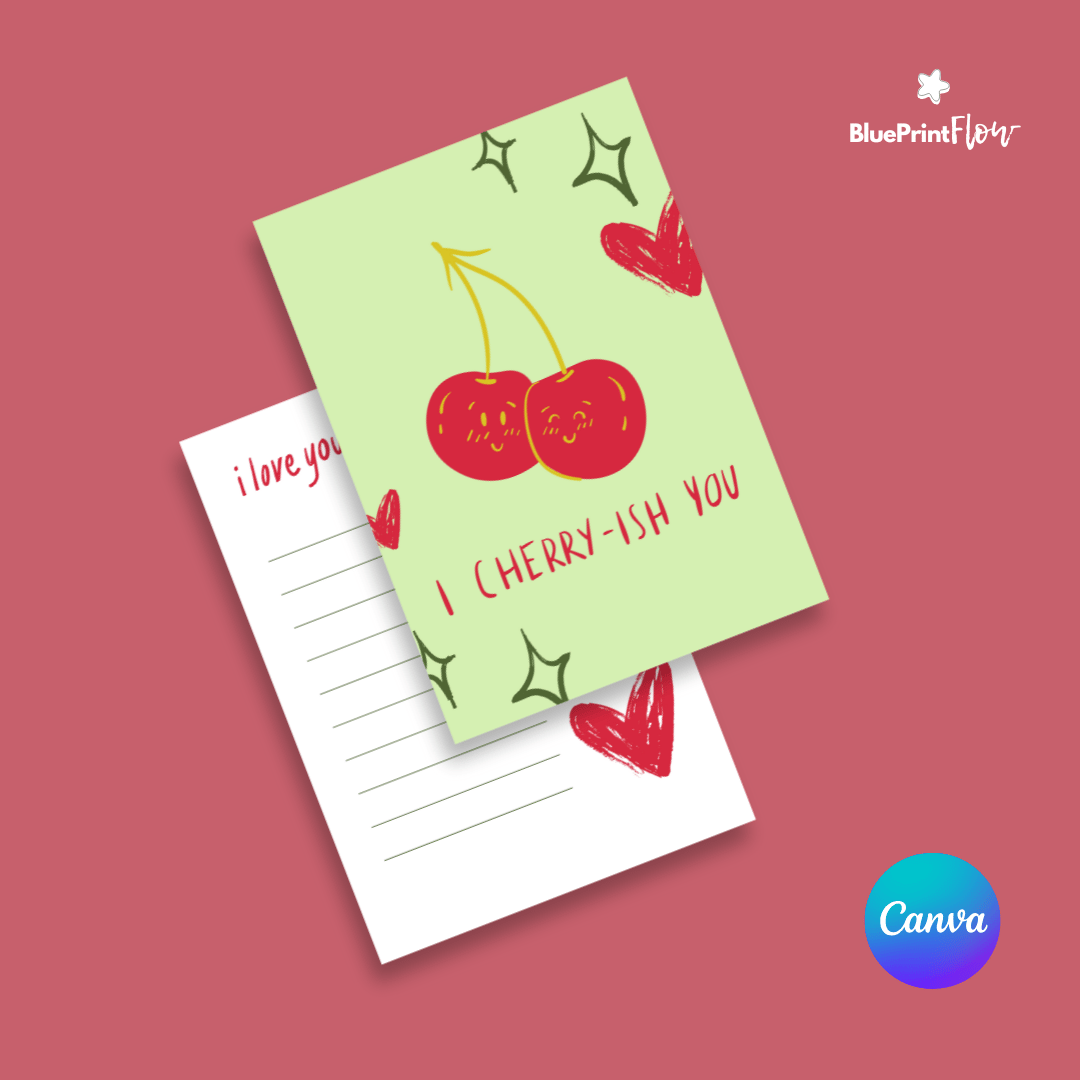 Featuring a simple and charming drawing of a cherry accompanied by a heartfelt message, this card is perfect for expressing your love in a fun and creative way. Designed for use with Canva software, this template is fully editable and printable, making it easy to customize to suit your style. Whether as a standalone gift or paired with a love letter, this artful design is ideal for sharing your feelings on this special day.