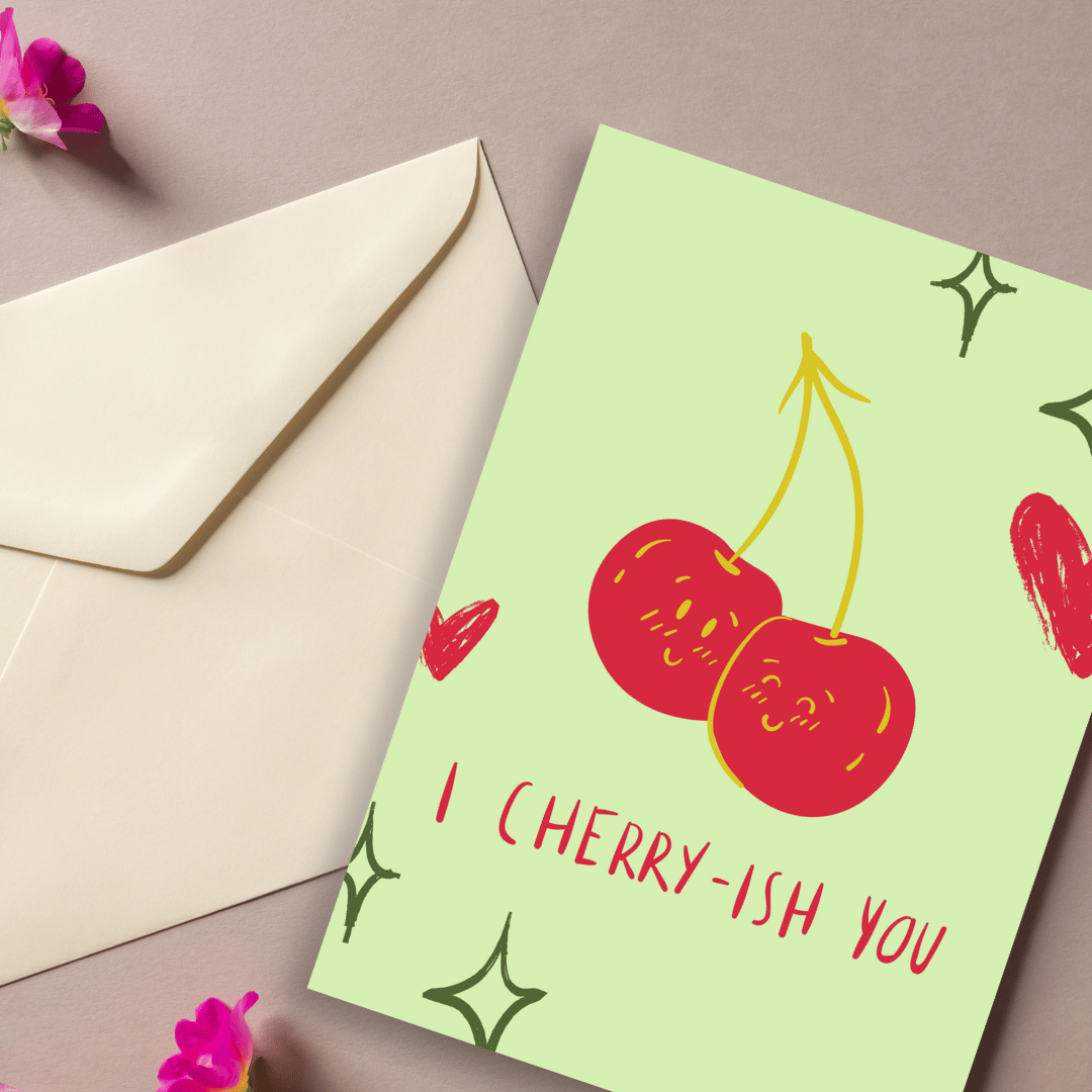 Celebrate love with our adorable "I Cherr-ish You" Valentine's Day Greeting Card Template.