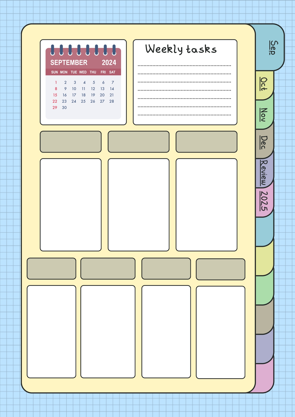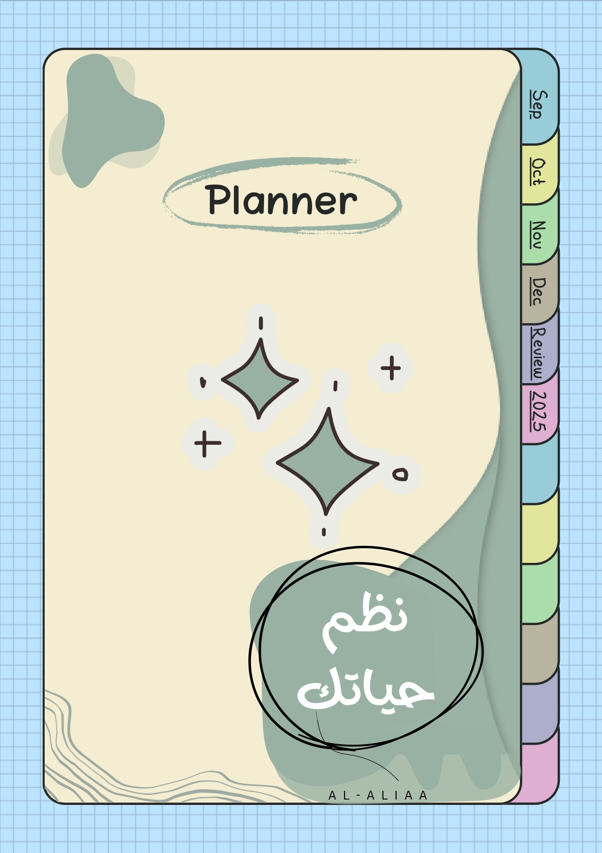 يحتوي على صفحات للتخطيط الشهري والاسبوعي واليومي