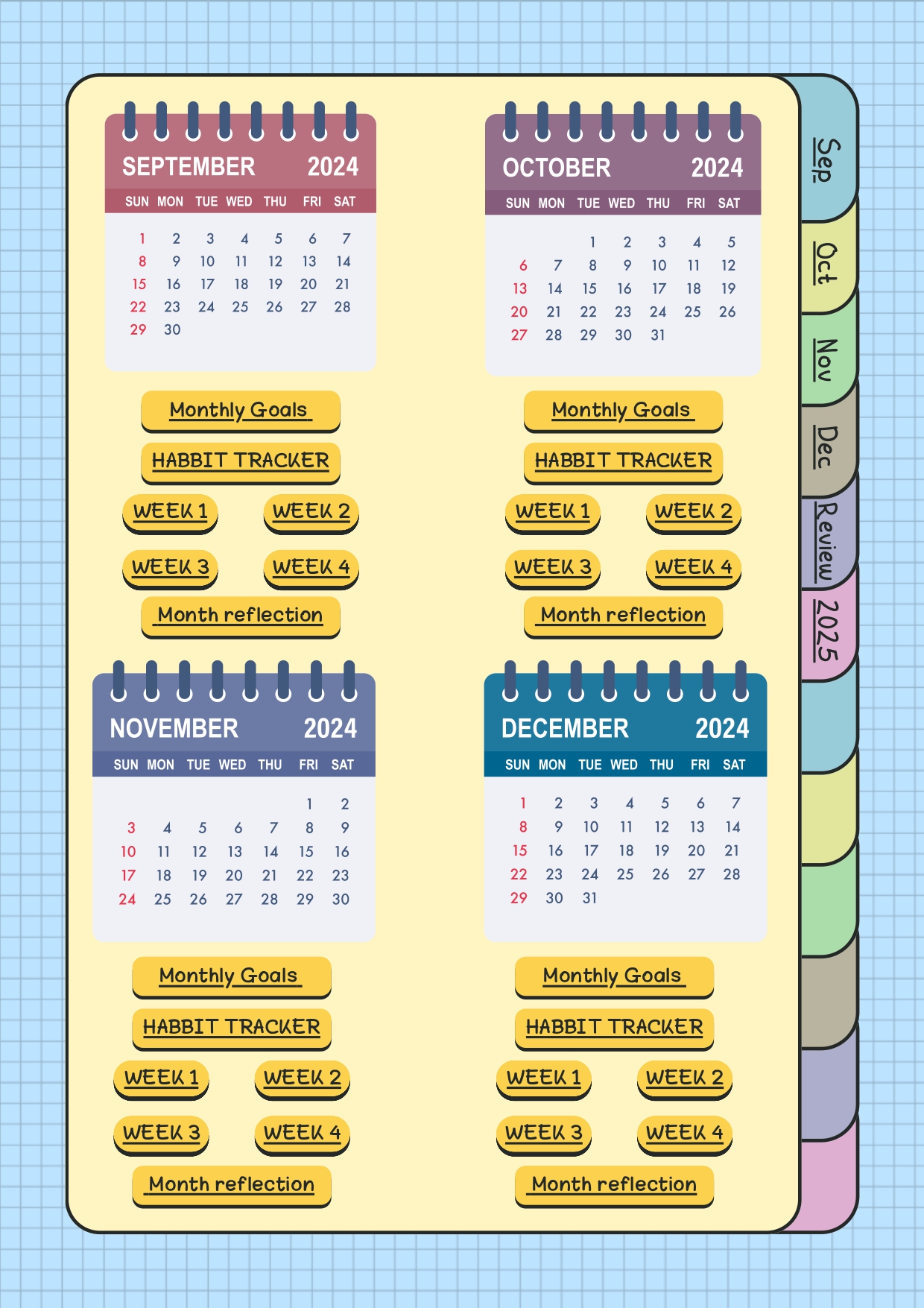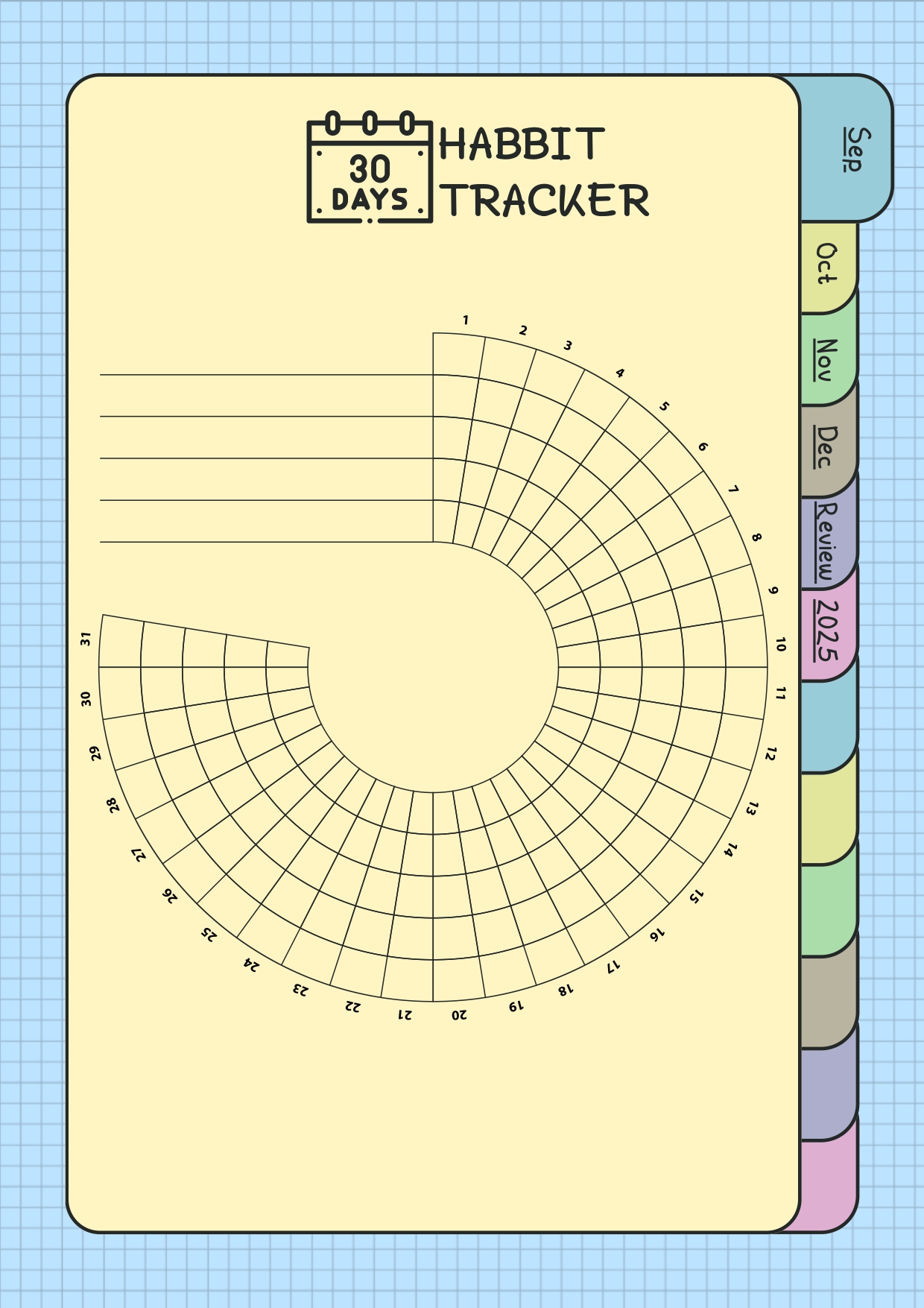 بالإضافة إلى صفحة تتبع العادات و المراجعة الشهرية الخاصه بكل شهر