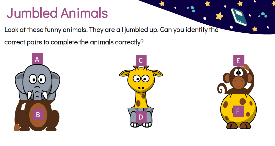 - Picture-based thinking, sorting, matching, memory games, and simple logic