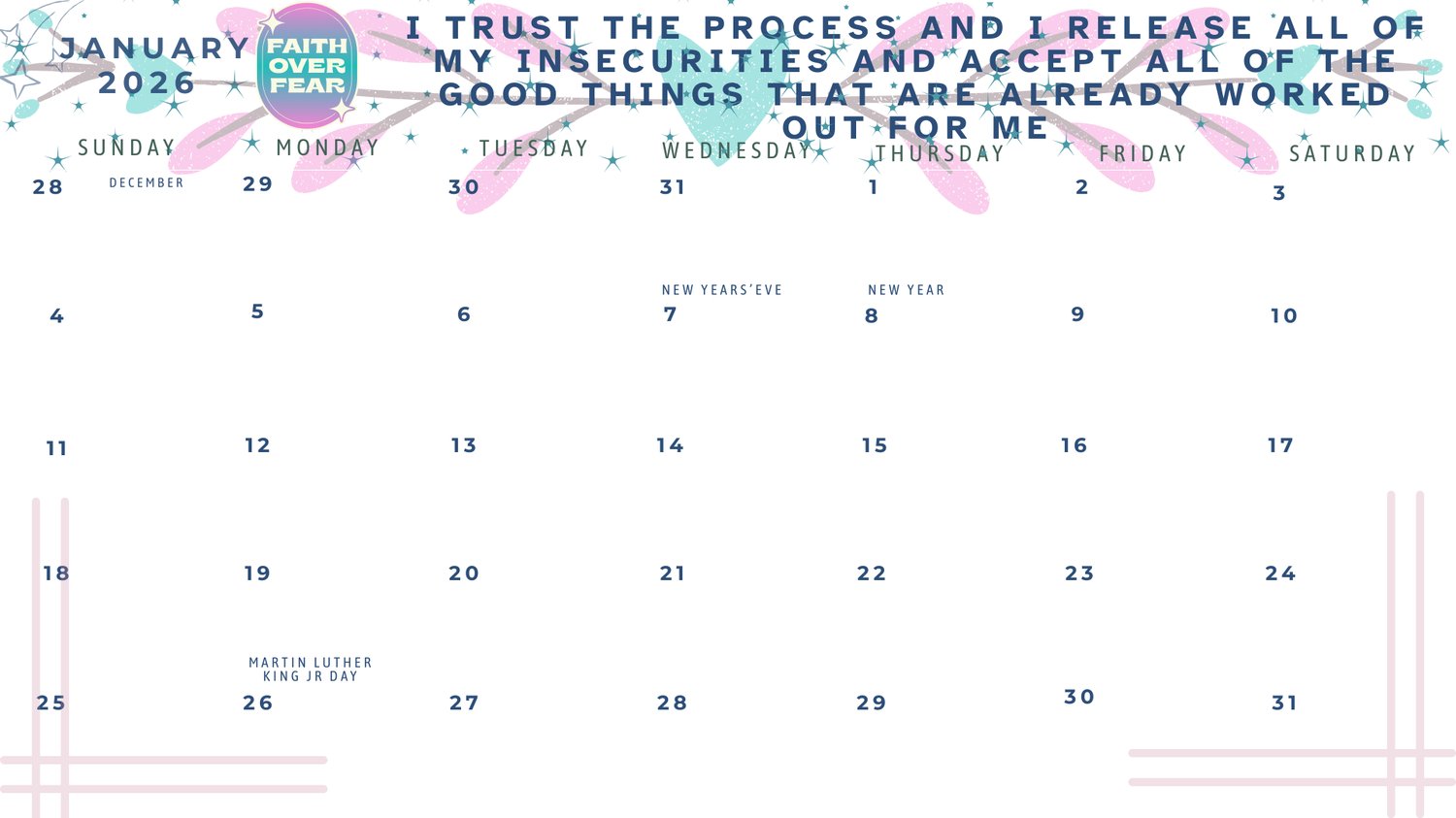 2026 Calendar with affirmations to help you increase your faith. pdf download.