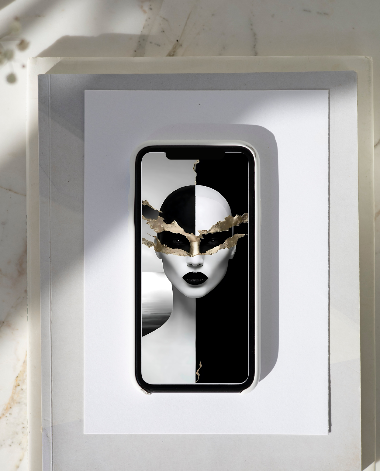 Elegant combination of monochrome tones with metallic gold textures