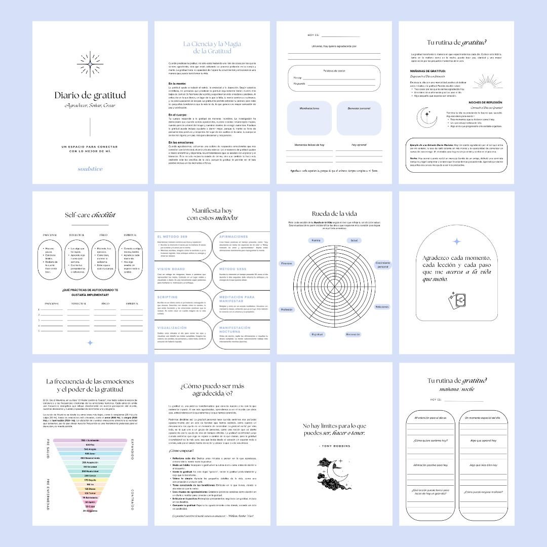 ✧ Reto de 4 semanas con ejercicios, actividades y afirmaciones para cultivar tu práctica de gratitud.