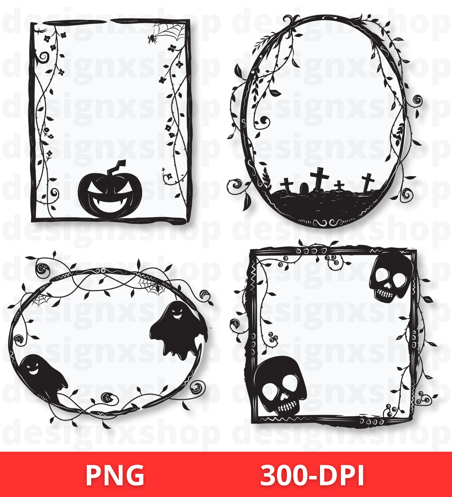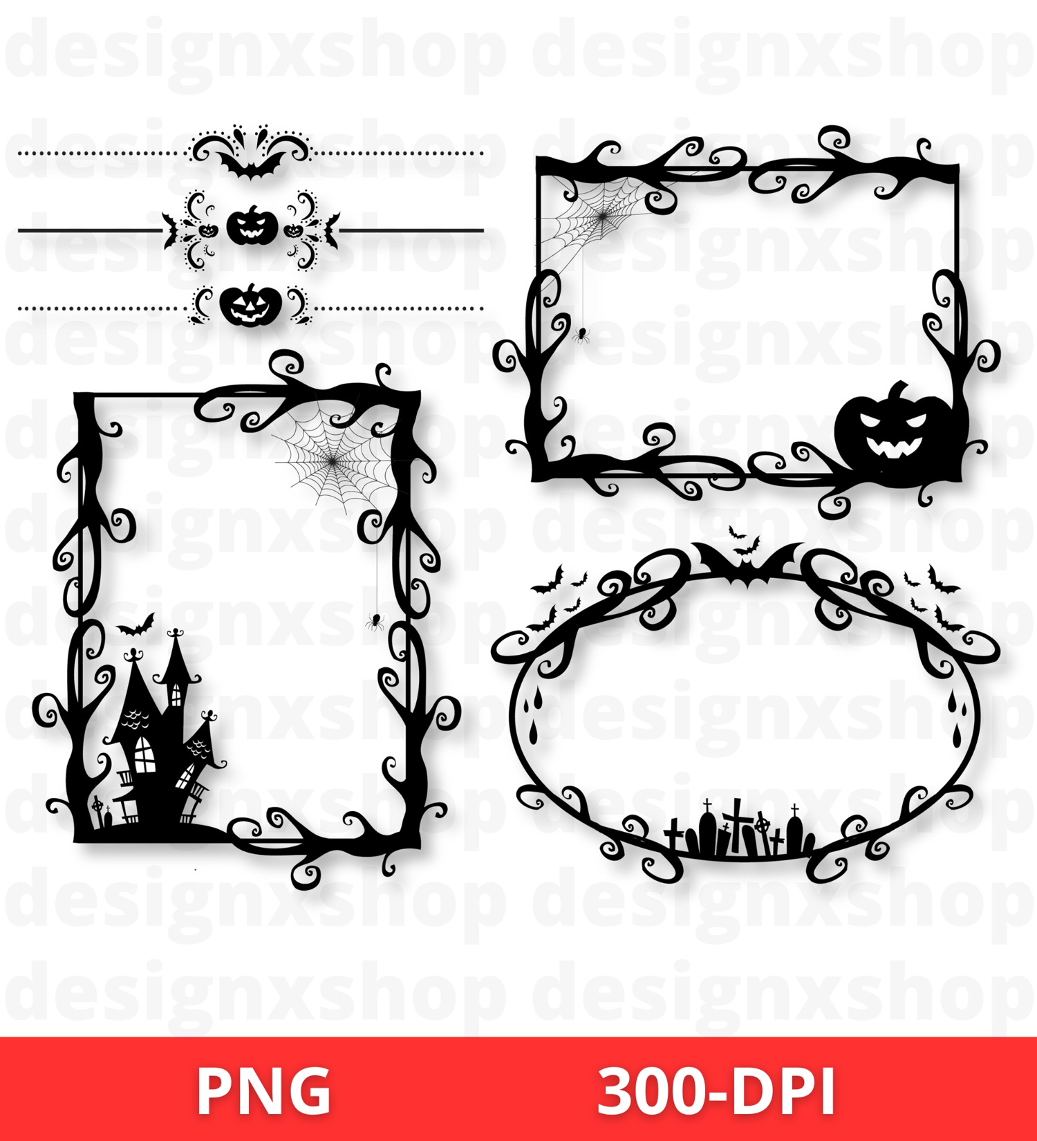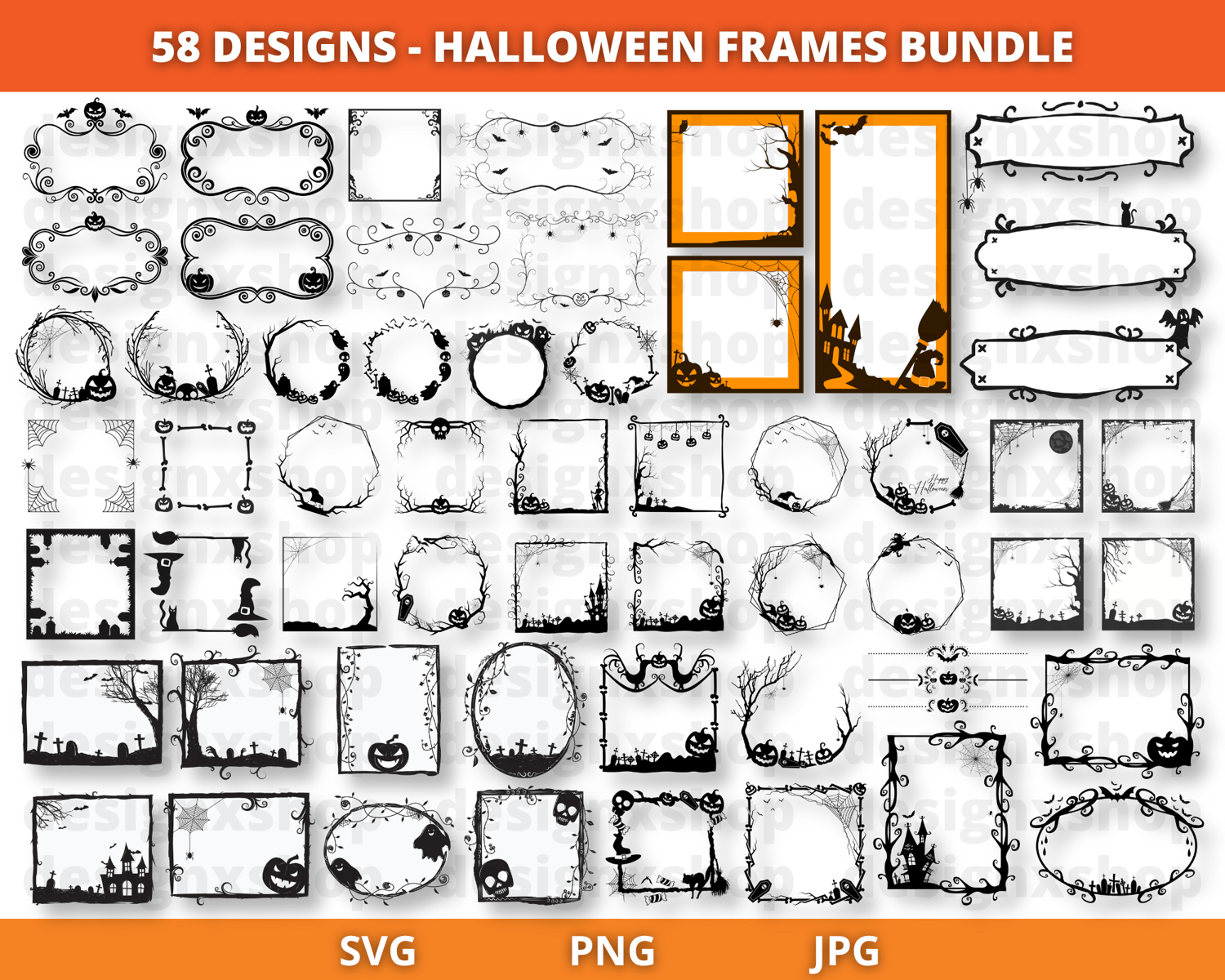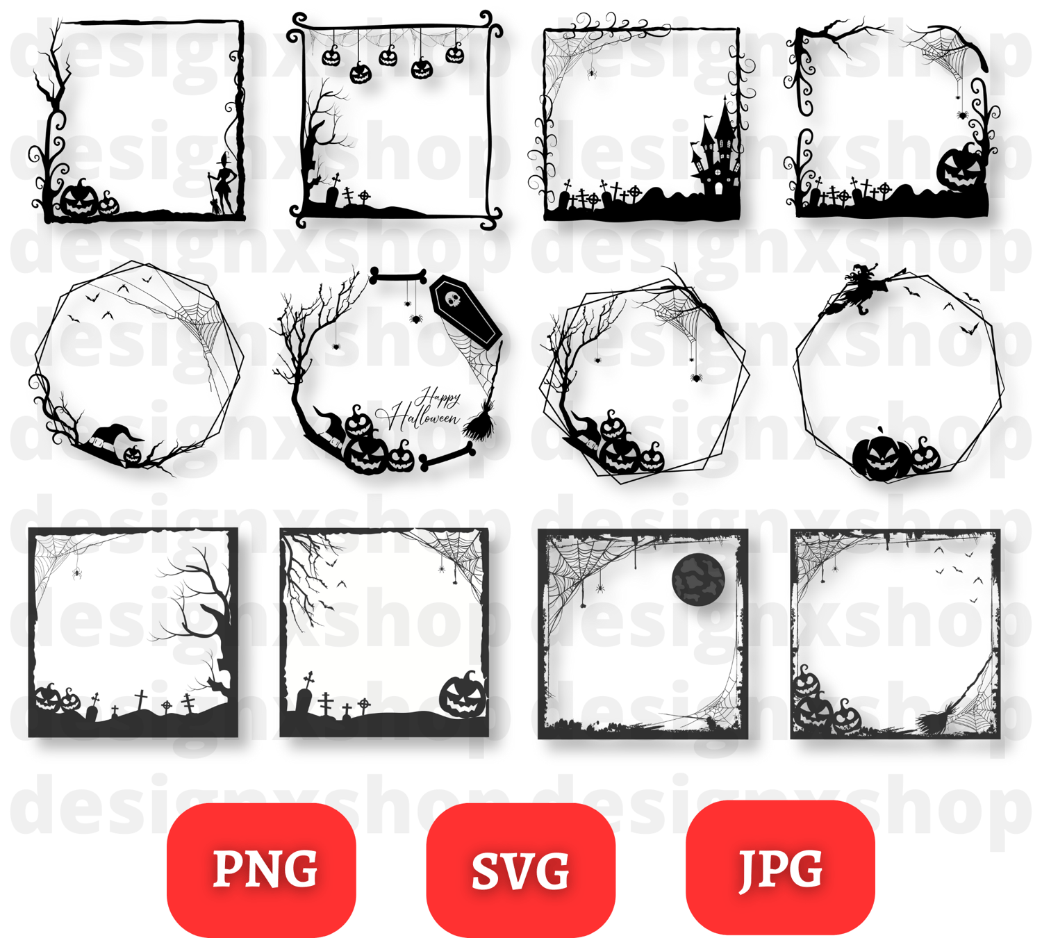 Halloween Frame SVG Bundle, Spooky Clipart, Geometric Vector (Digital Download)