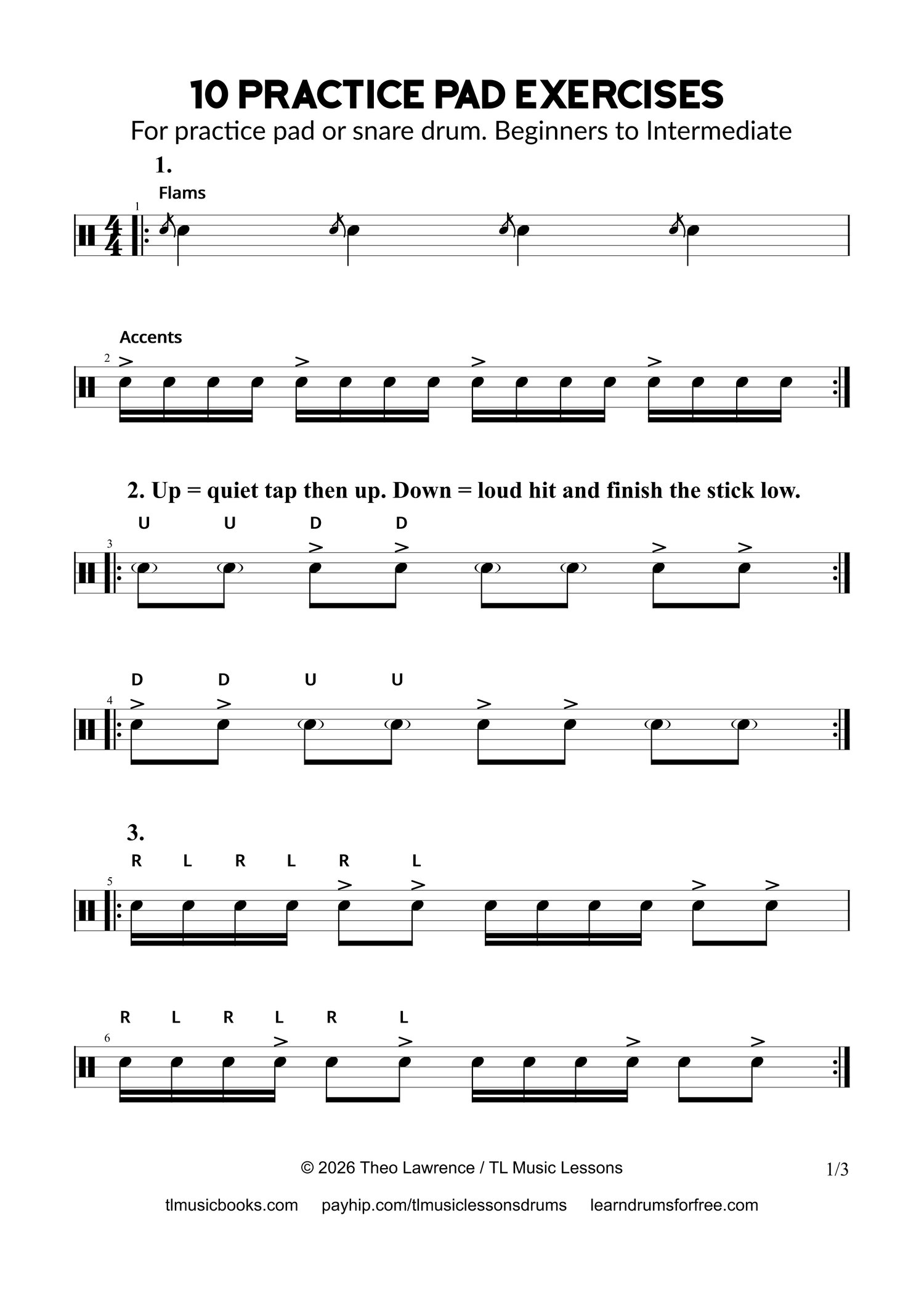 These 10 practice pad exercises are redesigned and edited exercises from the ebook Beginners Drum Book 2023