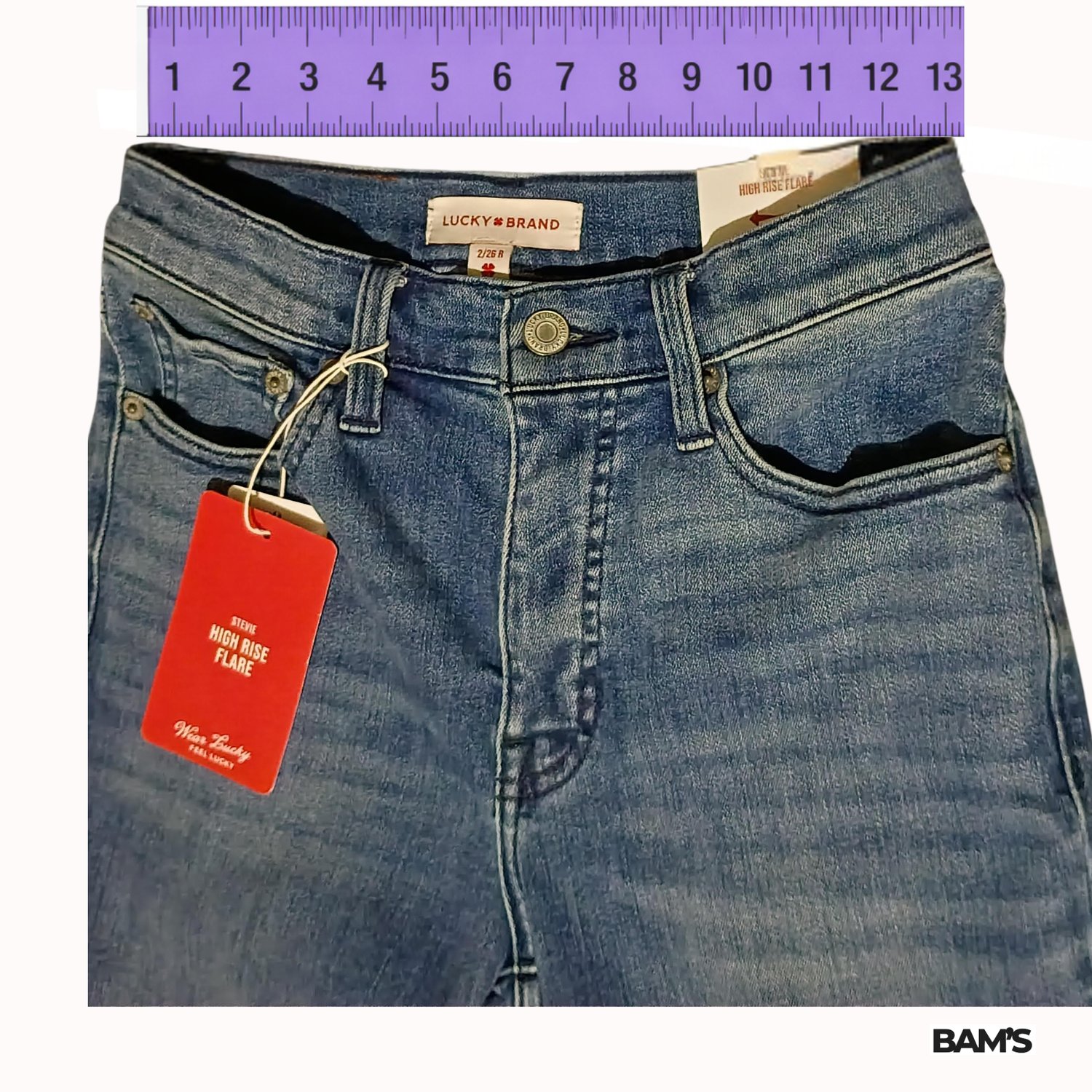 Classic retro flare with a modern high-rise fit that hugs through the hips and thighs, then flares perfectly at the hem. Soft, comfortable denim with that signature Lucky Brand feel.