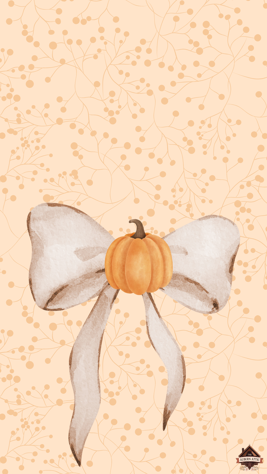 This Pumpkin Bow wallpaper and lock screen features a soothing neutral background, perfectly complemented by a delicate ivory bow at the center. Nestled in the heart of the bow is a charming pumpkin, adding a subtle touch of autumn warmth and seasonal style. Ideal for those who love understated beauty with a hint of festive flair, this design brings a cozy, sophisticated look to your phone or tablet—perfect for any time of year.