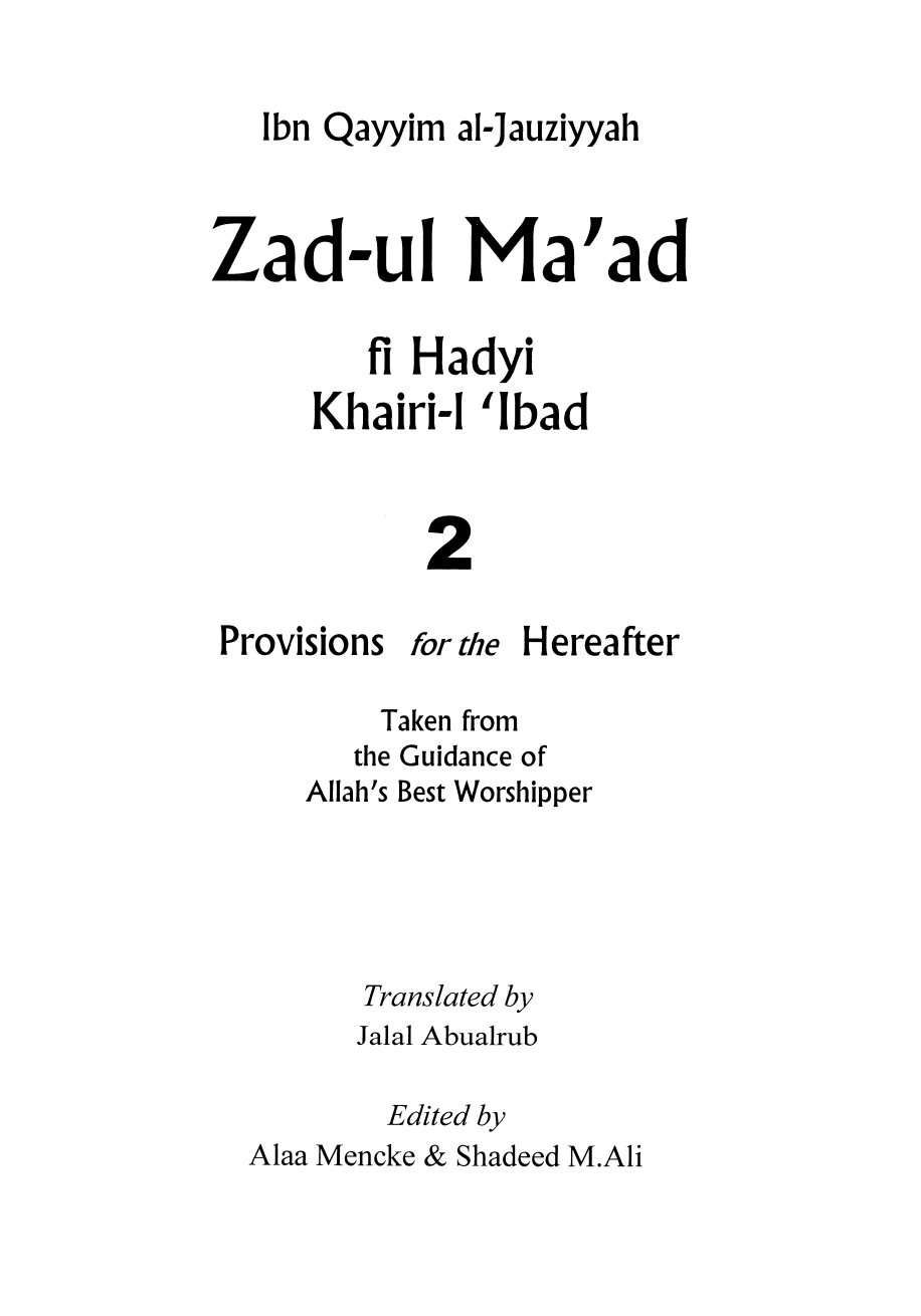 Zad al-Ma'ad (زاد المعاد) English -Ibn al-Qayyim Vol. 2