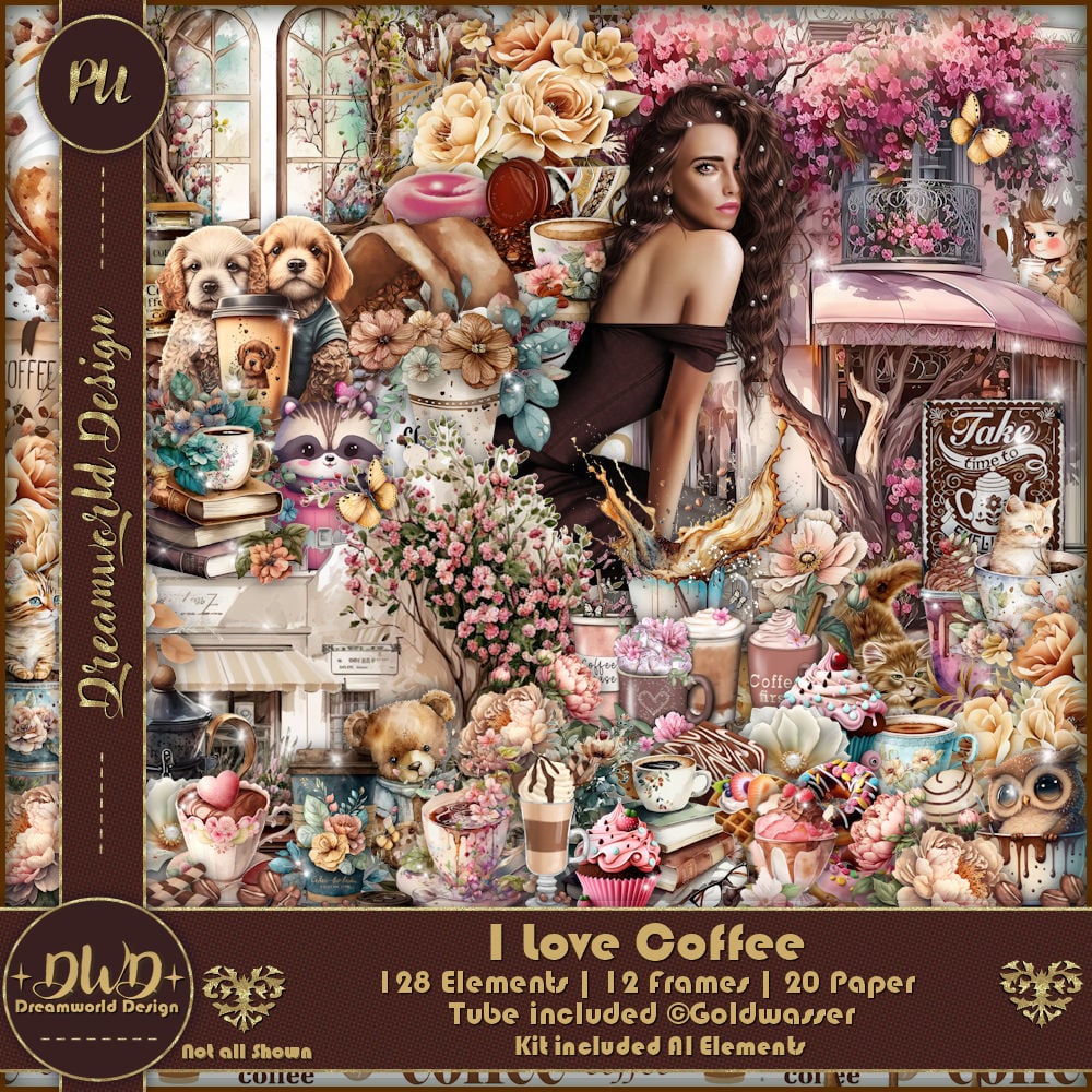 *I Love Coffee* is a tagger-size kit with 128 elements, 12 frames and 20 papers.