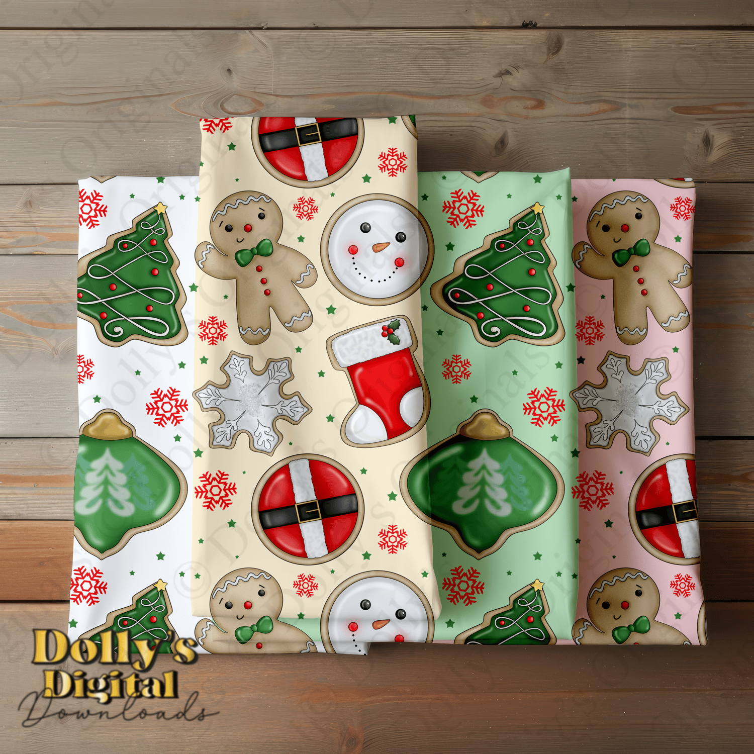 Includes the Four Red and Green Christmas Cookie Seamless Patterns PNG tiles (4 PNG’s)