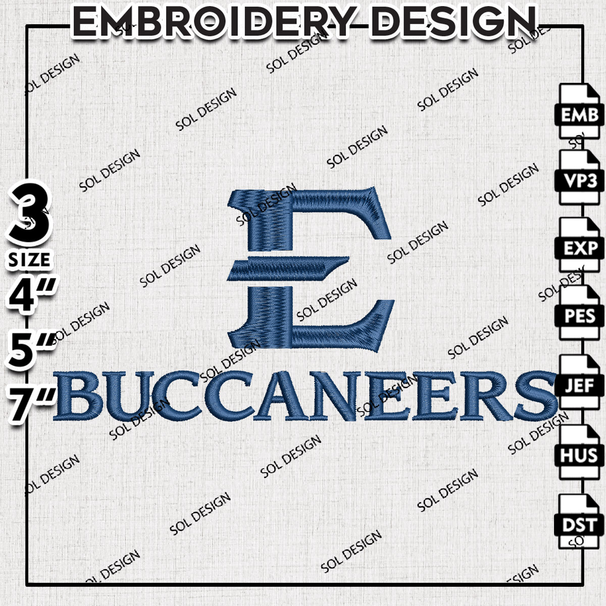 NCAA E Buccaneers Football Team Logo Embroidery Files, NCAA East Tennessee State Buccaneers Team Embroidery, NCAA College Football Teams, East Tennessee State Team Emroidery, 3 sizes, Machine embroidery designs, Digital Download