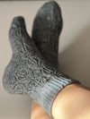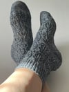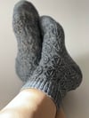 Cuff-to-toe socks with lace and cable designs in 2 sizes